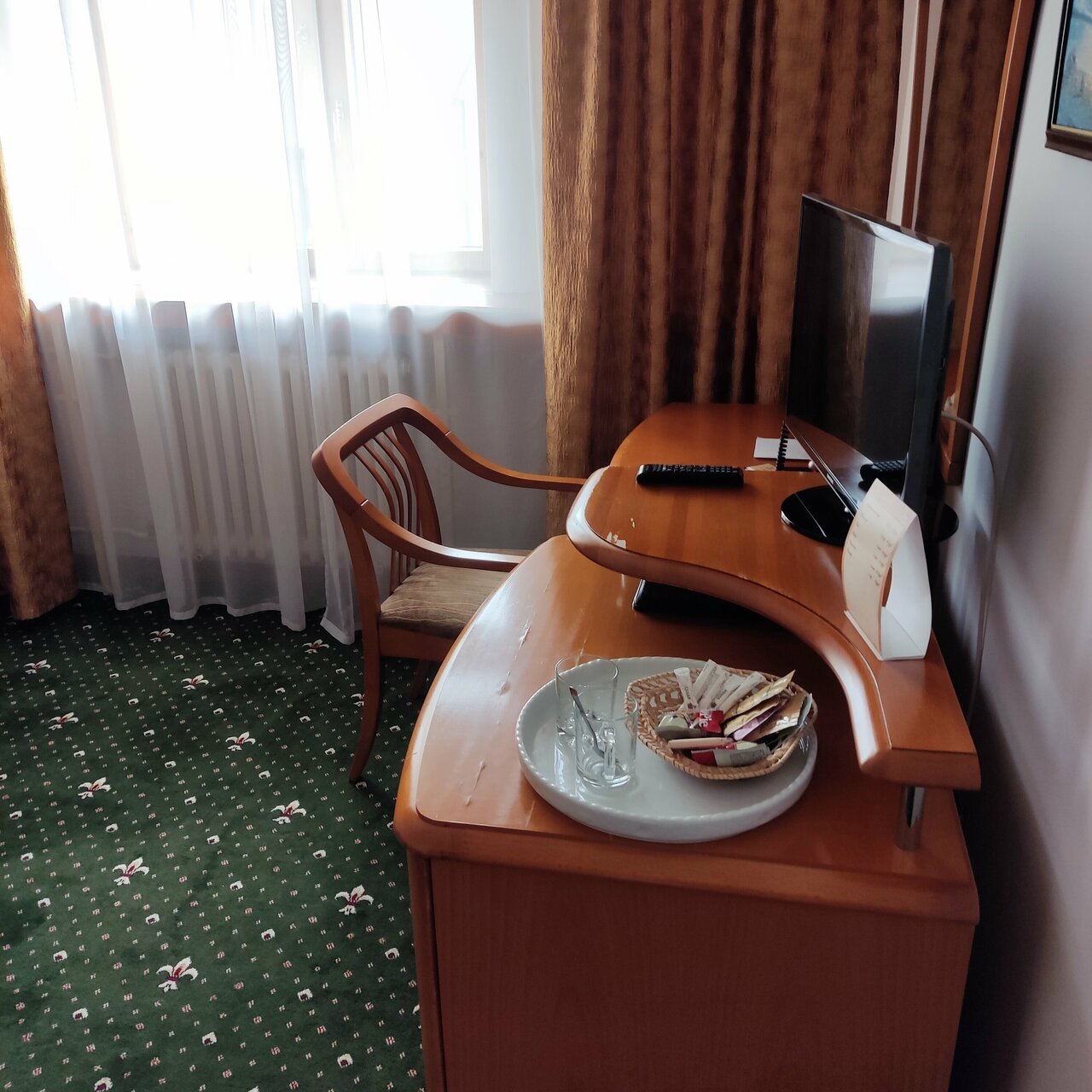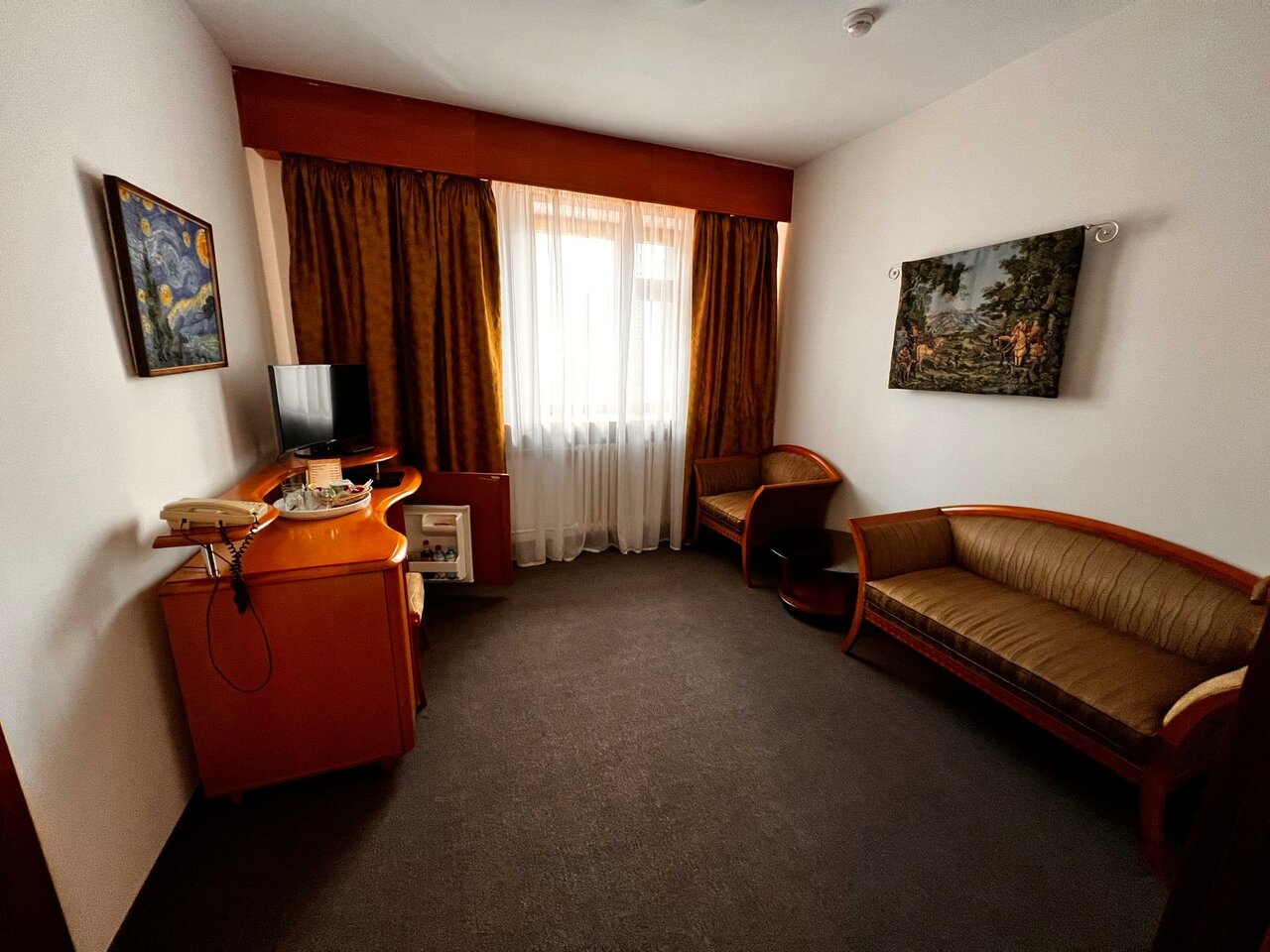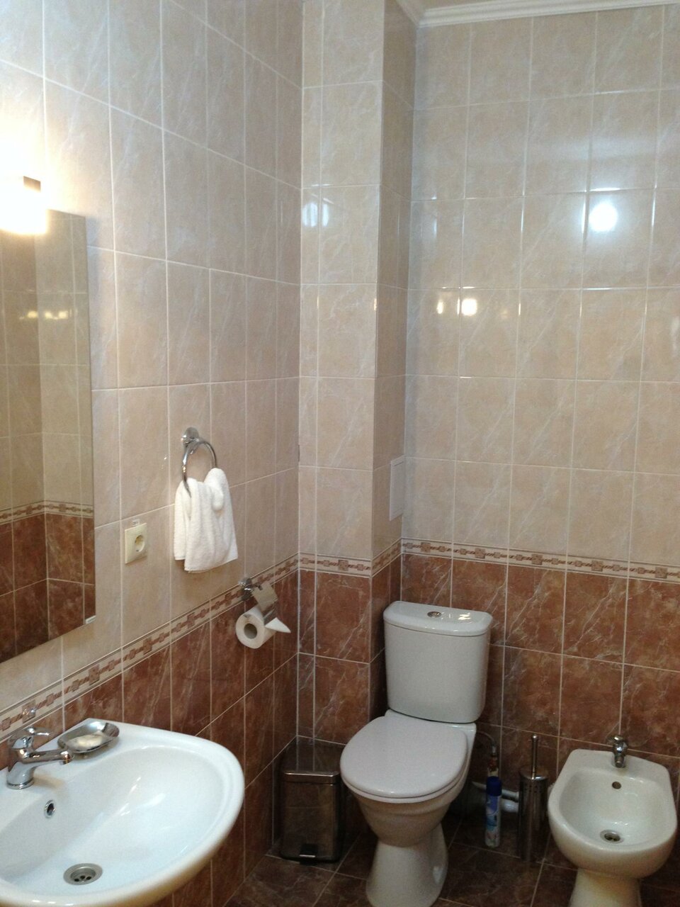 Брал номер чуть дороже стандарта. В туалете был сломан стульчак, прямо в месте где сидит человек. Минибар как обычно, даже вода минеральная платная. Фен из начала нулевых, трубка которая еле еле дует. Завтрак неплохой, но вроде зависит от стоимости номера. Кофе не предлагают.