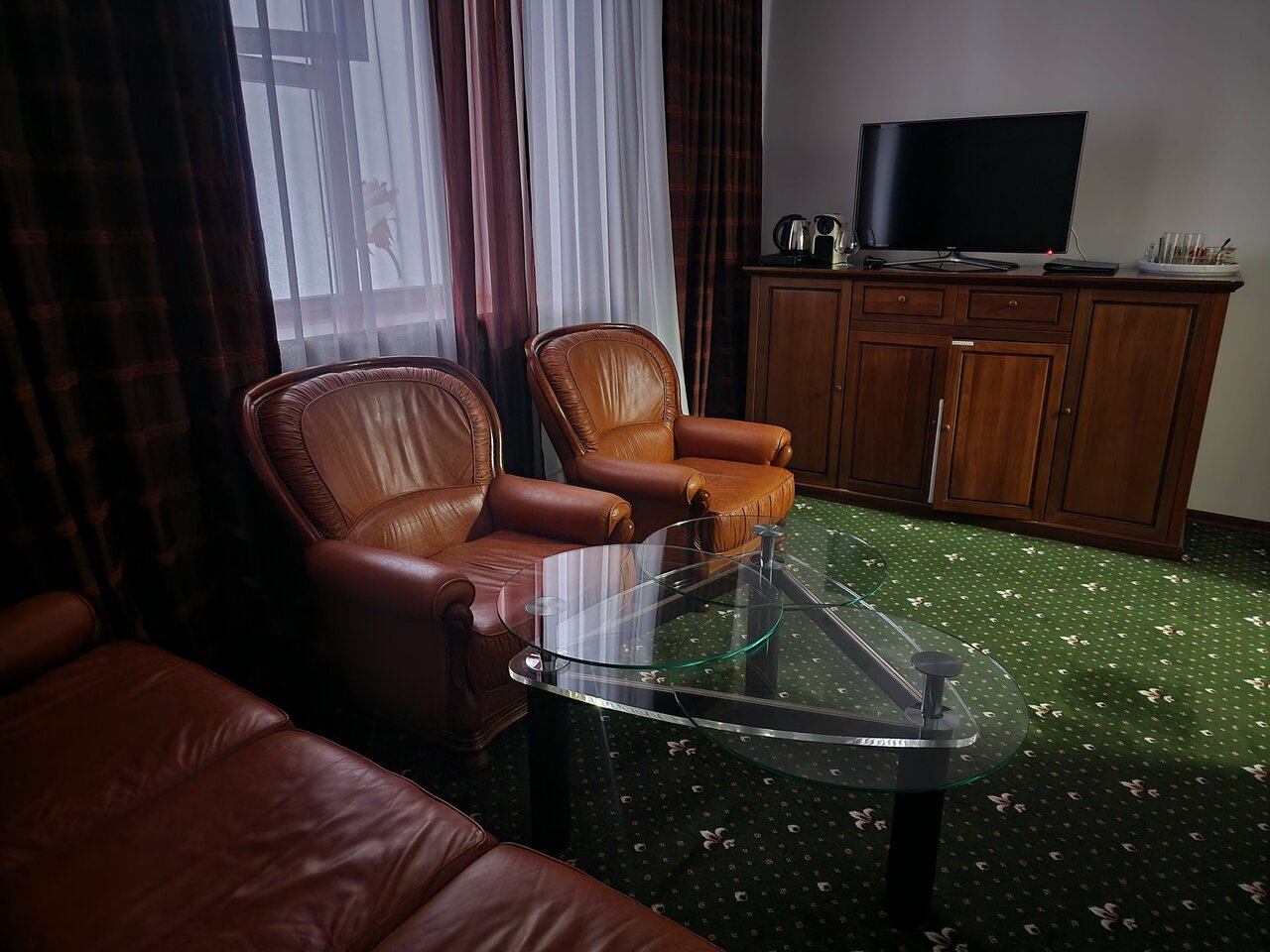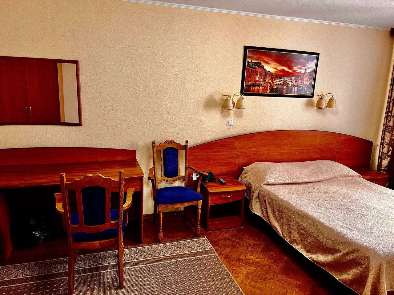 Всё очень уютно и чисто, даже не мог представить, что в таком месте’территориально’ может быть такая опрятная гостиница. Приезжал не отдыхать, но комфорт и чистоту, а особенно корректность и готовность персонала пойти на встречу гостям чувствуется с порога. Мебель добротная, всё чисто, хорошая звукоизоляция, что ещё нужно путешественникам. Если сравнивать с отелями (заграница), то 4+ твёрдая (‘5’ идут мишленовские отели)))