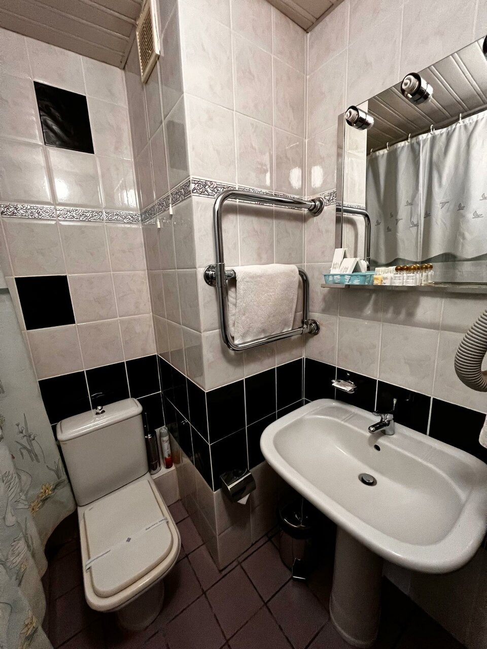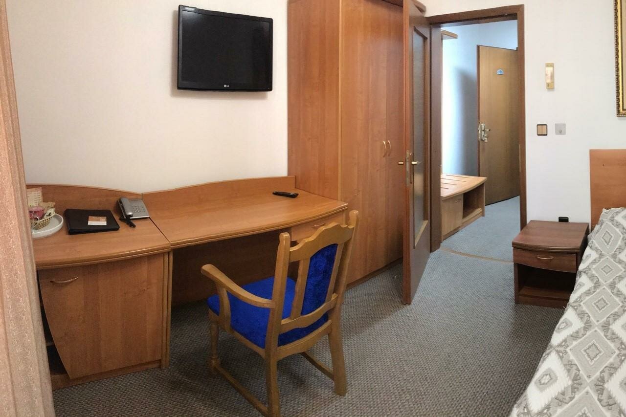 Номера очень требуют ремонта: входная дверь в номер болтается, шкаф открывается с трудом и закрывается также, раковина засоренная, лейка на душе льет как обычный шланг, антена на тв аналоговая все рябит-21 век уже вообщето. После сообщения на ресершн, прочистили раковину и поменяли лейку на на душ. Завтраки и ужины нормальные, но делает видимо не повар, т.к. выглядит так будто делал подросток, порции каждый раз разные по размеру, хлеб за 3 дня один раз был на завтрке. Неплохое расположение, напротив есть круглосуточная пяторочка, магазины.