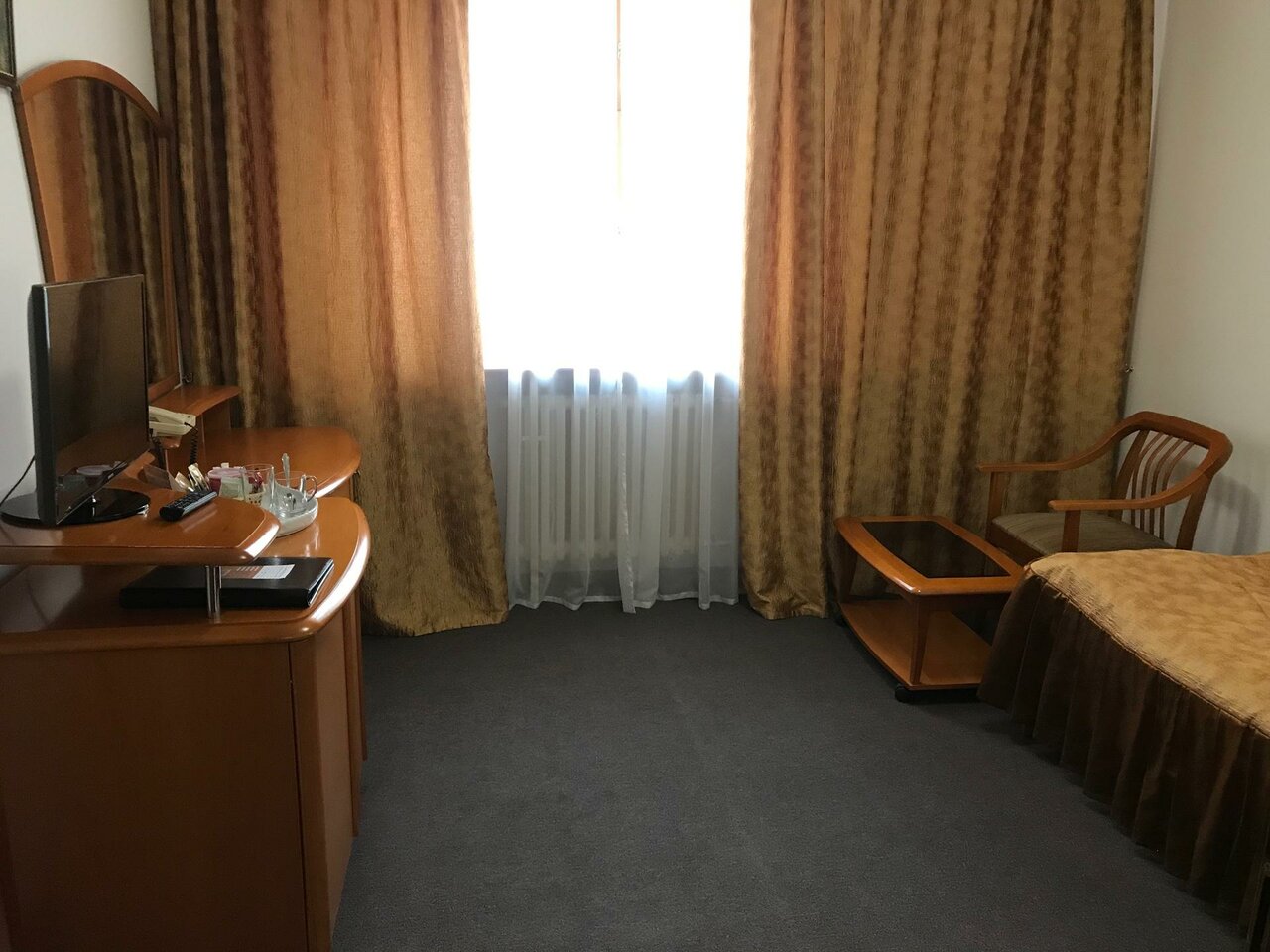 Гостиница повидала не мало))) интерьерчик подизносился. Но вроде чистенько. Кухня не работает, еда привозная. Завтрак с 8 утра, и в 8 он уже холодный.