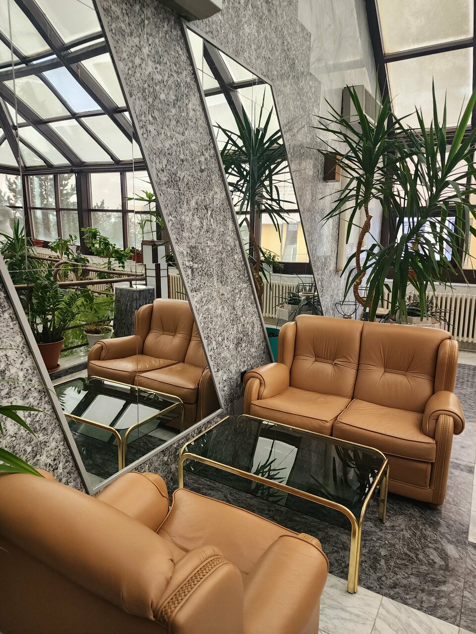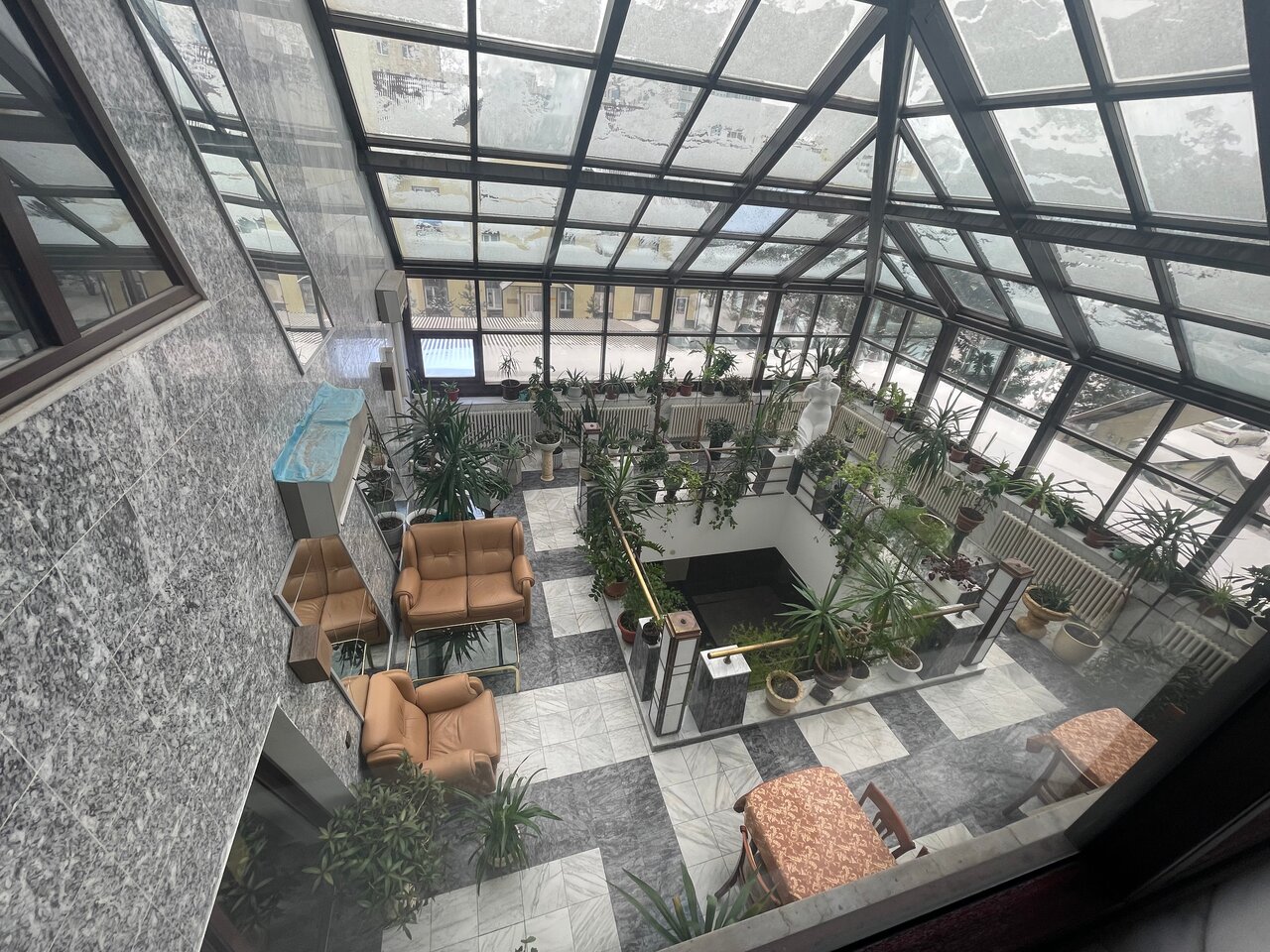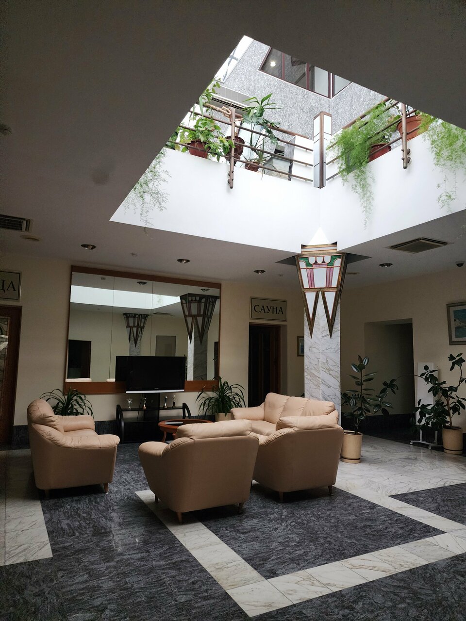 - Красивый зимний сад.; Приятный и отзывчивый персонал.; Корректность и готовность персонала помочь.; Близость к магазинам и развлекательным заведениям.; Приятная атмосфера в зимнем саду.