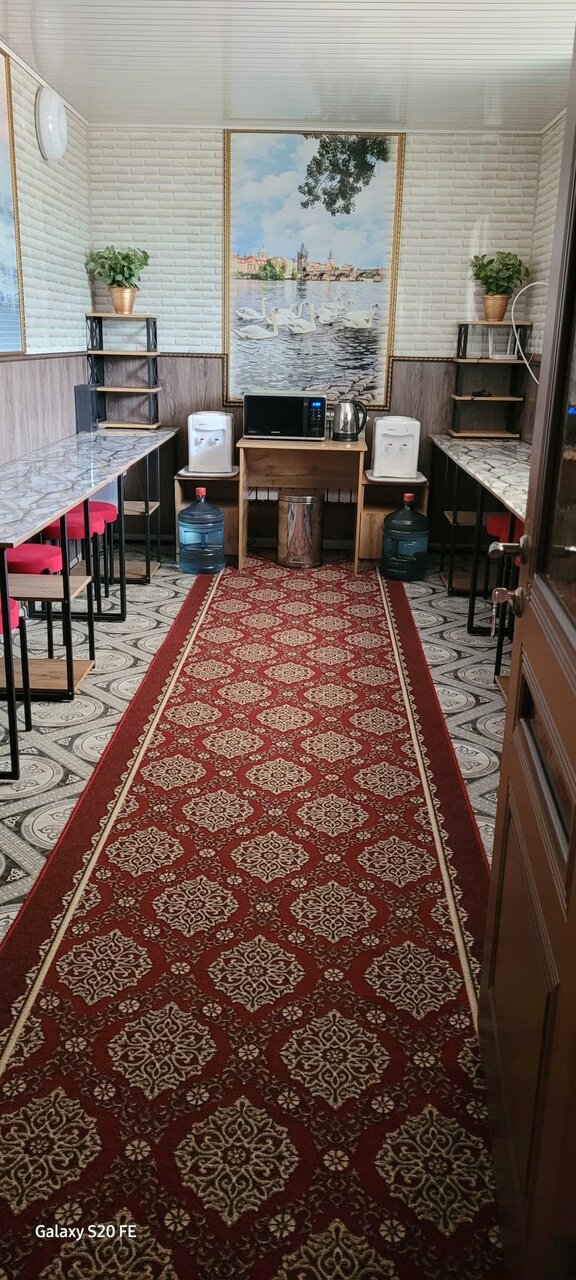 Ночевали одну ночь в дороге. Всё отлично. Номер на троих огромный просто, кровати широкие, холодильник, чайник, чашки, посуда вплоть до доски разделочной, ножика и тарелок вилок одноразовых. Можно несколько дней пожить. Единственный минус — из курилки очень тянет дымом. В остальном всё прекрасно