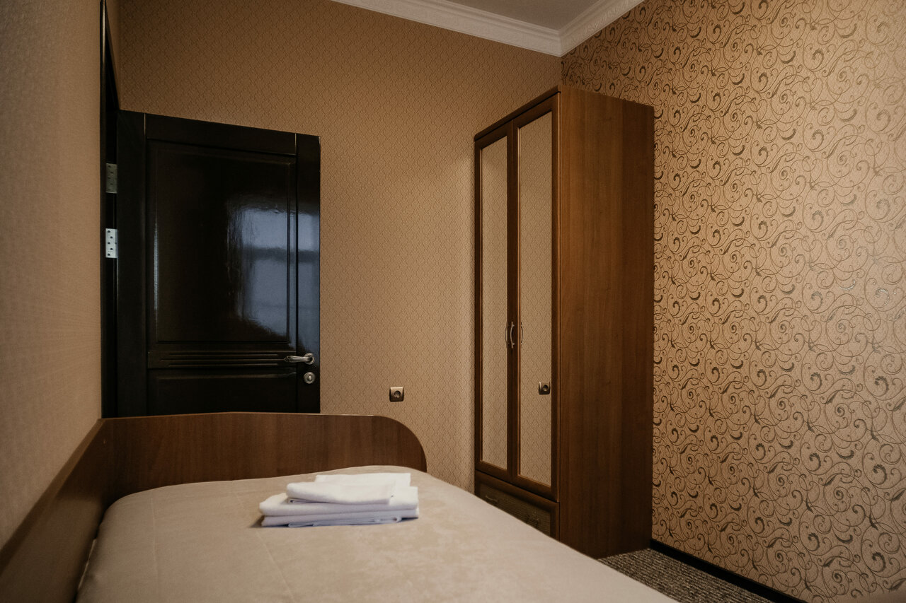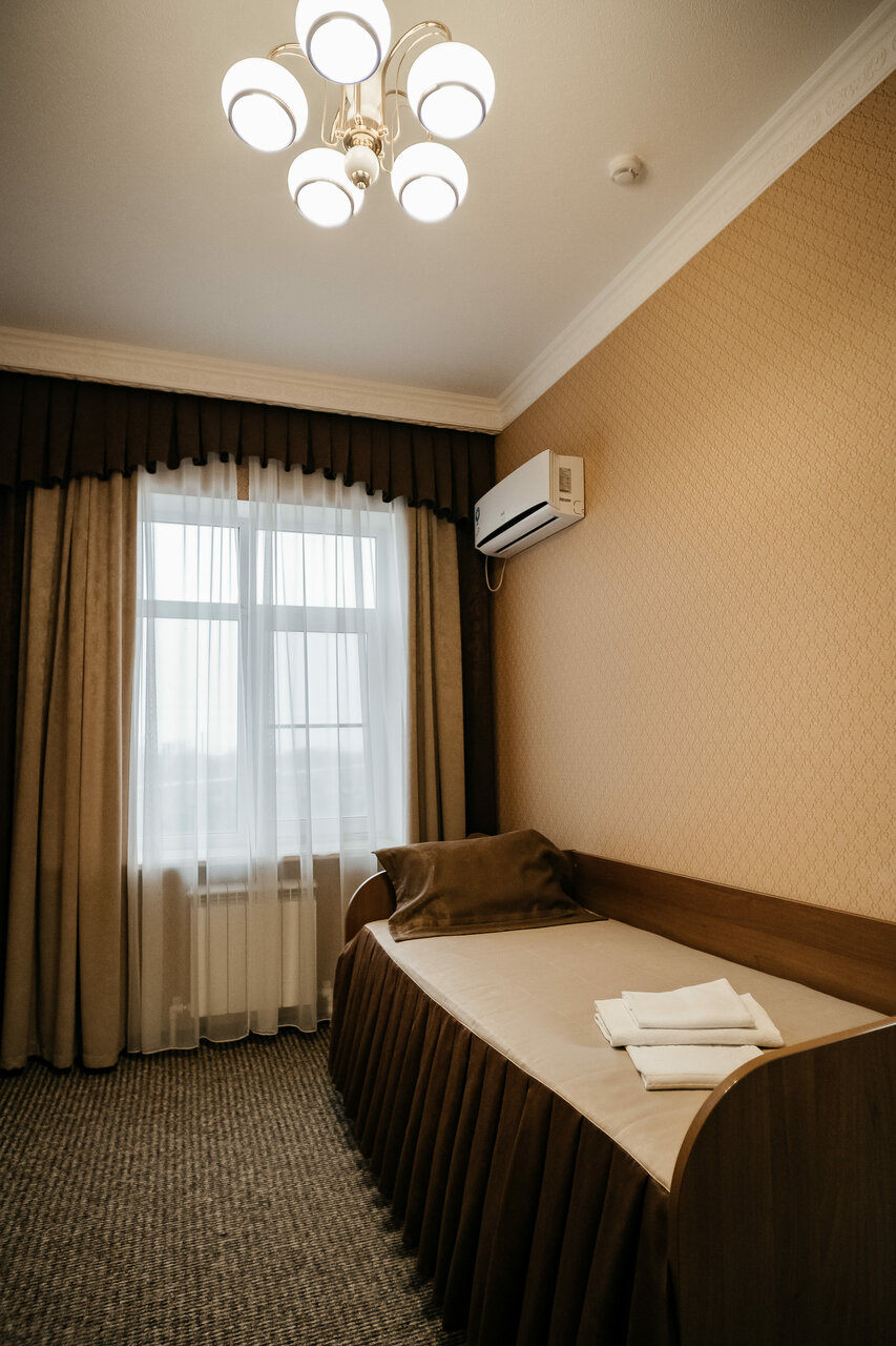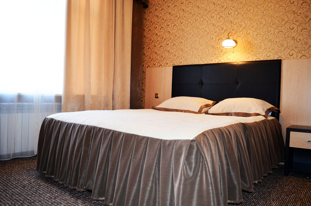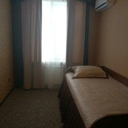 Услуги: — Номера (от 2500 до 3500 ₽/ночь) с кондиционером, Wi-Fi, телевизором, холодильником, санузлом, феном, чайником. — Бесплатная парковка, круглосуточная стойка регистрации. — Питание: кафе, ресторан, столовая, детское меню, завтрак (опционально). — Дополнительно: бильярд, бар, сад, прачечная, сейф, ускоренная регистрация.