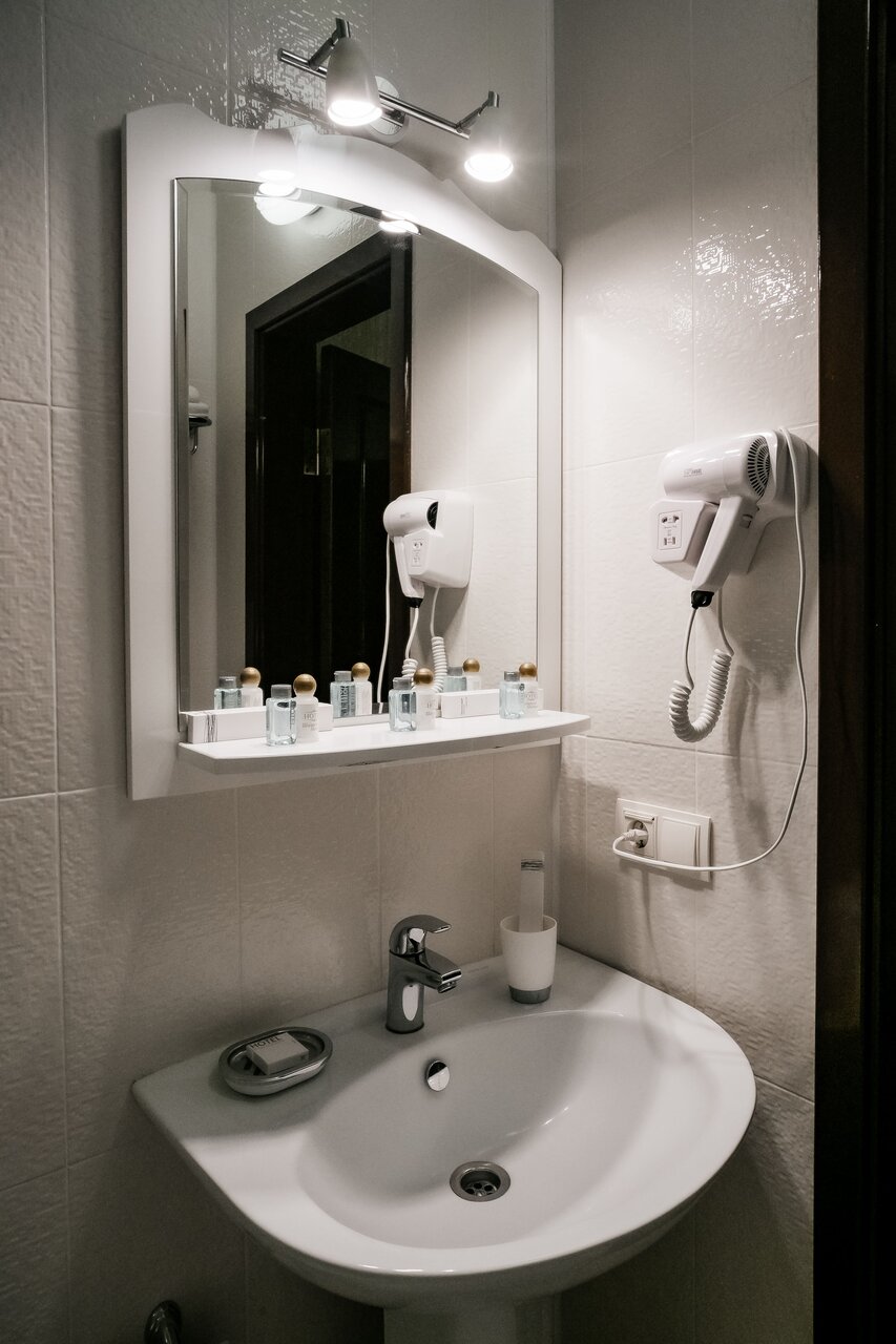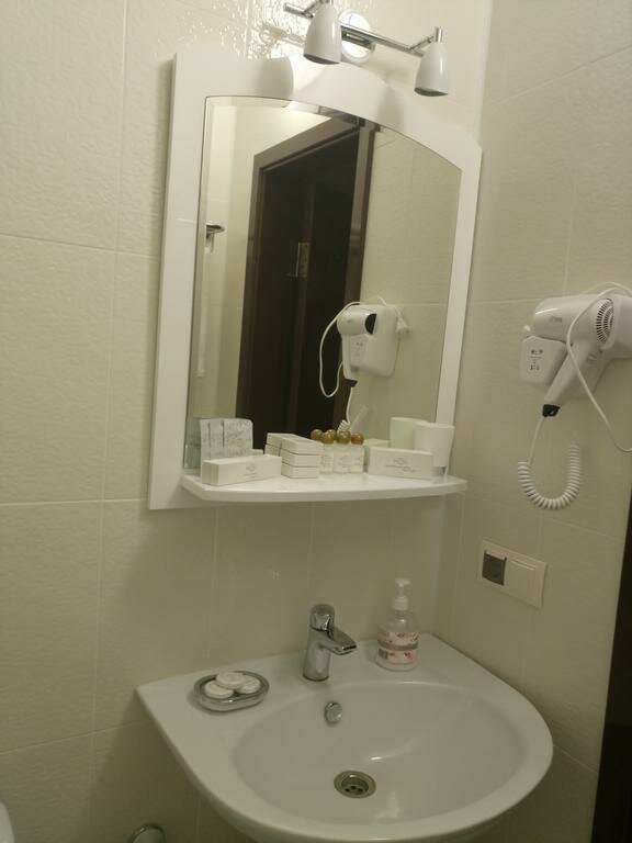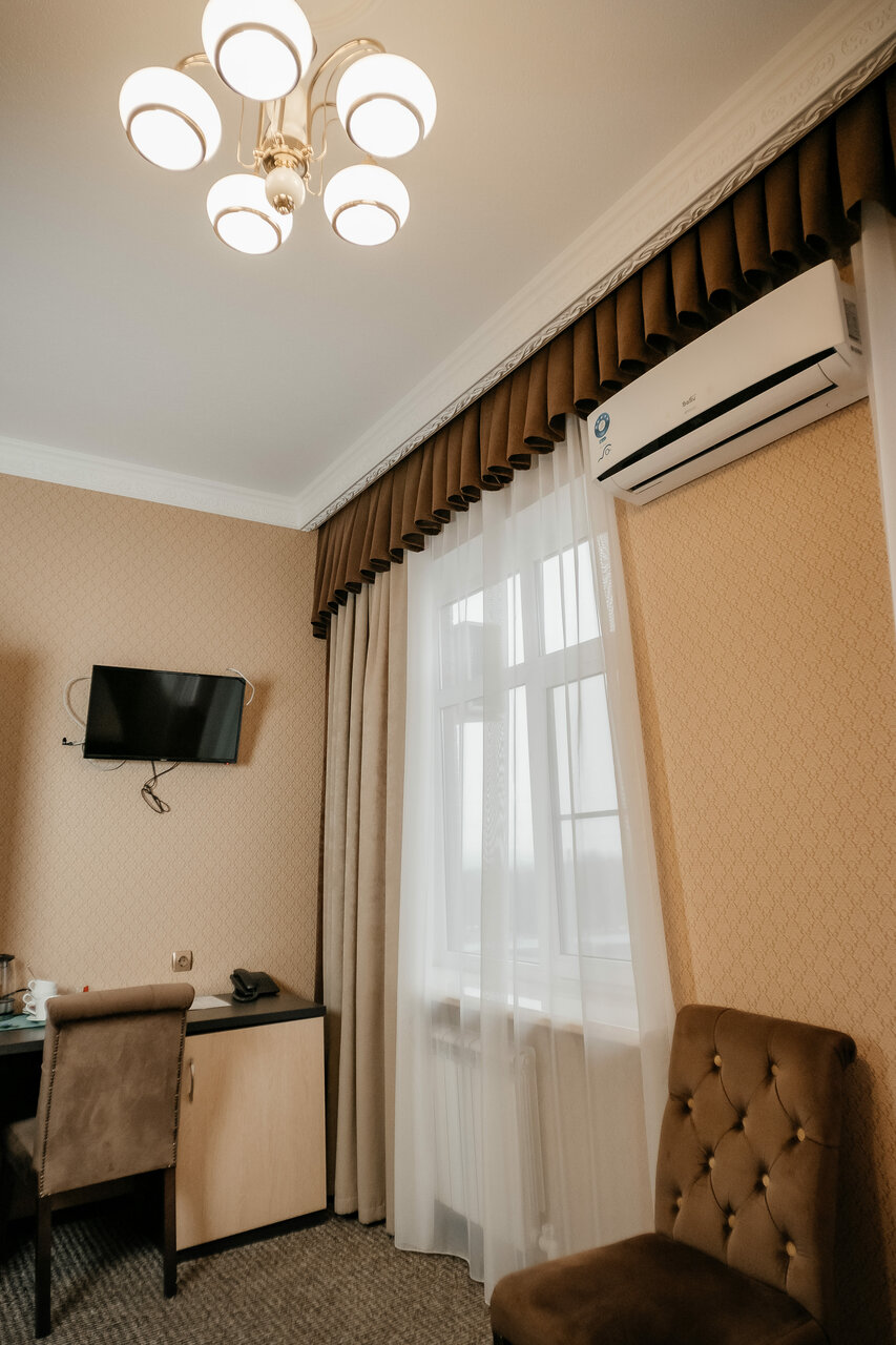 Сам номер, санузел и кровать большие, просторные. В целом все аккуратно, оформление на любителя в вензелях и штукатурке. На завтрак подают заказанное накануне блюдо (яичница или каша), шведского стола нет. Нам показалось, что это лучше, чем вообще отсутствие завтрака, как в большинстве небольших отелей. Внешний минус — рядом ресторан и в пятницу вечером караоке работало до глубокой ночи. Если не открывать окно, пережить можно. Для одной ночевки по пути ‘ок’.