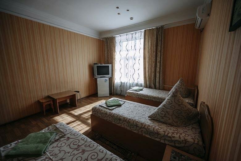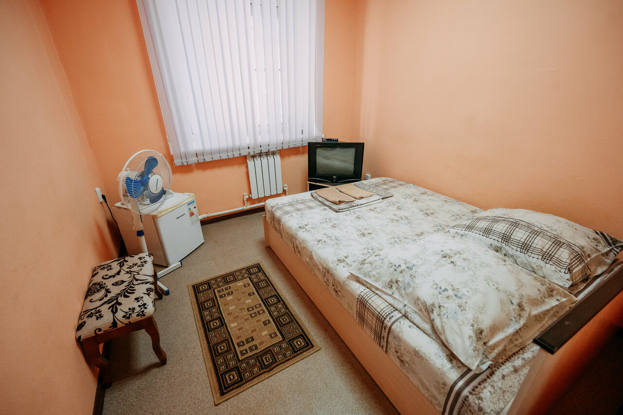 В номерах «Эконом» есть все необходимое для комфортного пребывания и сна: телевизор, холодильник, кондиционер, общая ванная комната на этаже, бесплатный Wi-Fi.