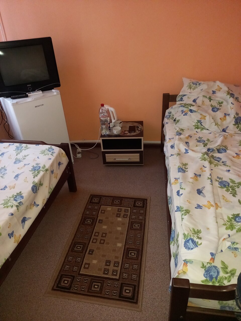 Номер был чистинький, парковка есть, удобство на этаже, персонал хороший, ну не работал телевизор а так все хорошо порадовал кондиционер и стоимость. Цена качесиво
