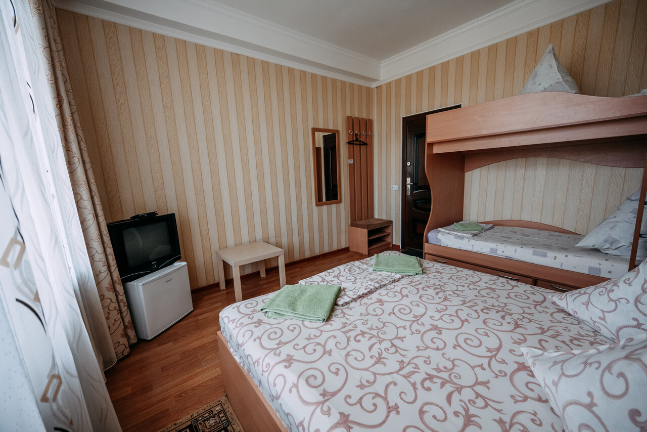 В номерах «Семейный» есть все необходимое для комфортного пребывания и сна: телевизор, холодильник, кондиционер, собственная ванная комната, душевая кабина, фен, бесплатный Wi-Fi.