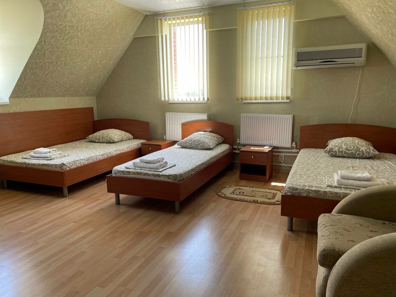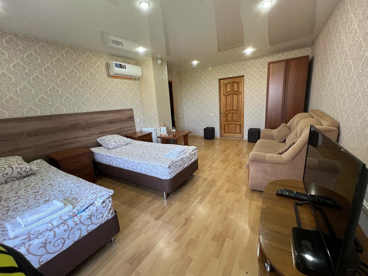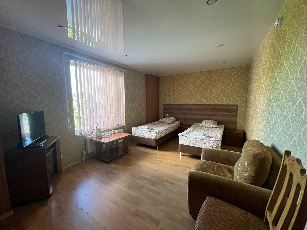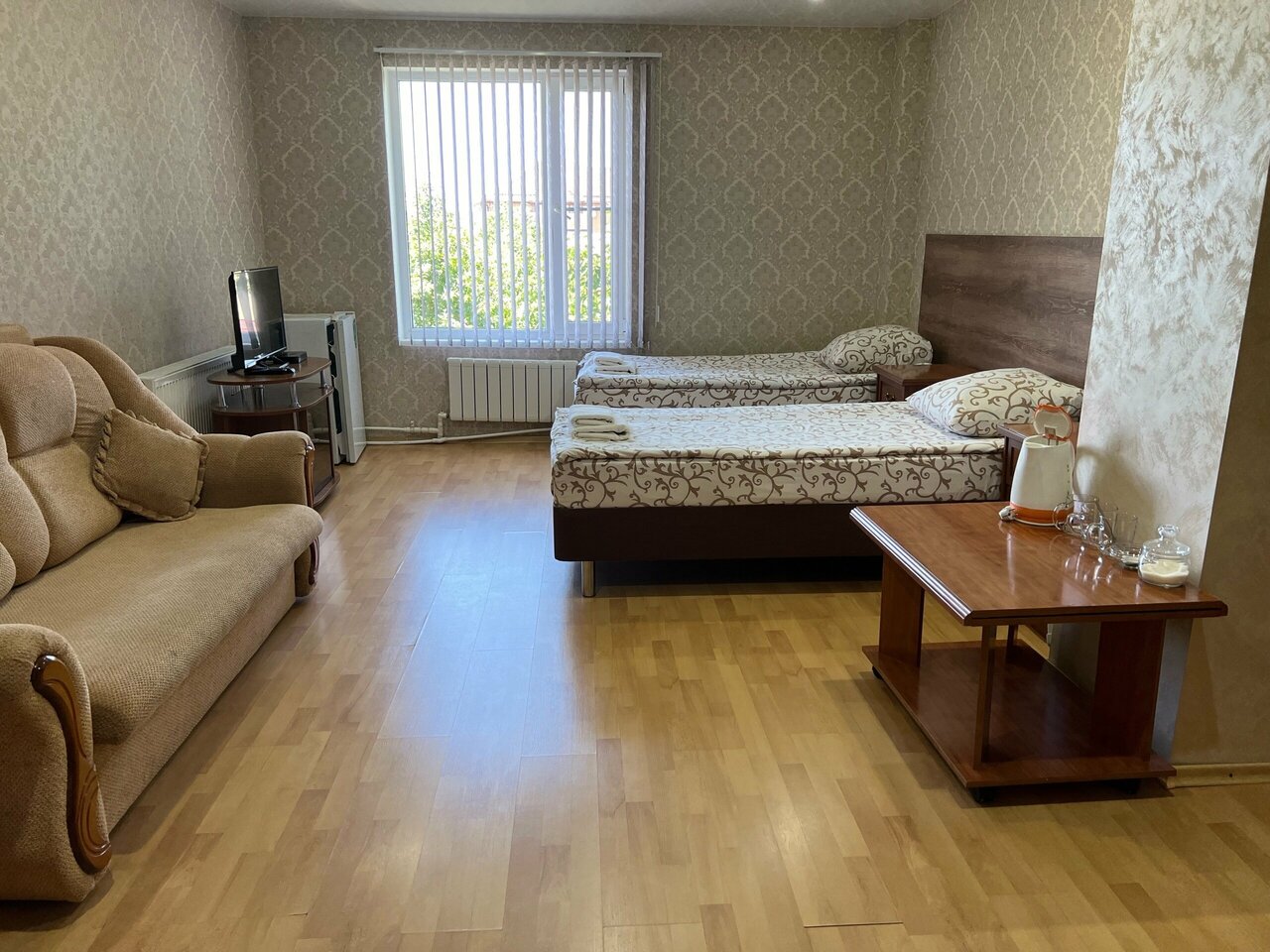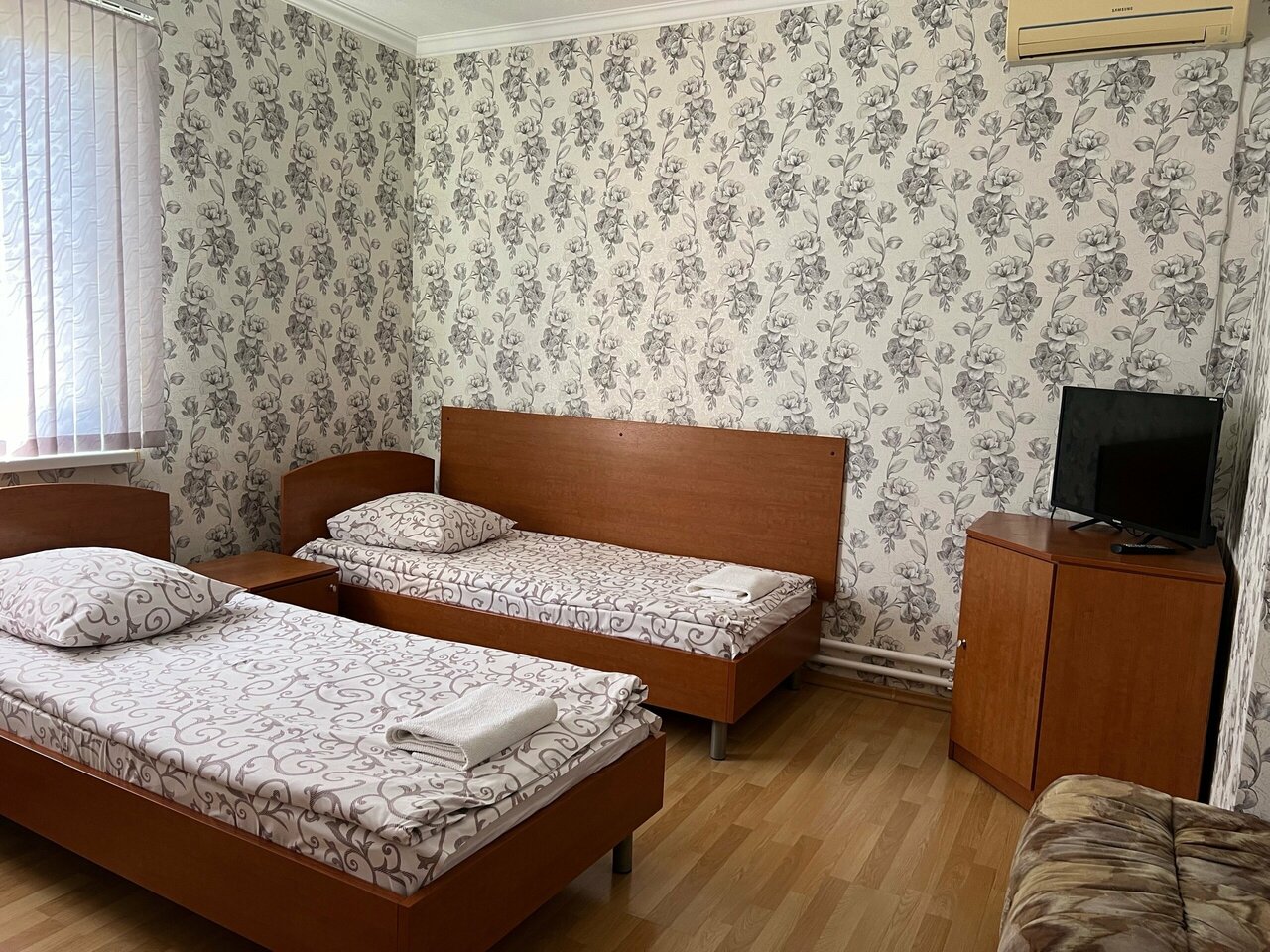 Комфортный номер вмещает в себя 1- 4 человека . В номере две раздельные кровати ( можно сдвинуть если нужно) раскладной диван, телевизор, холодильник, чайник, кондиционер , туалет/ душ в номере. в гостинице есть закрытая парковка .