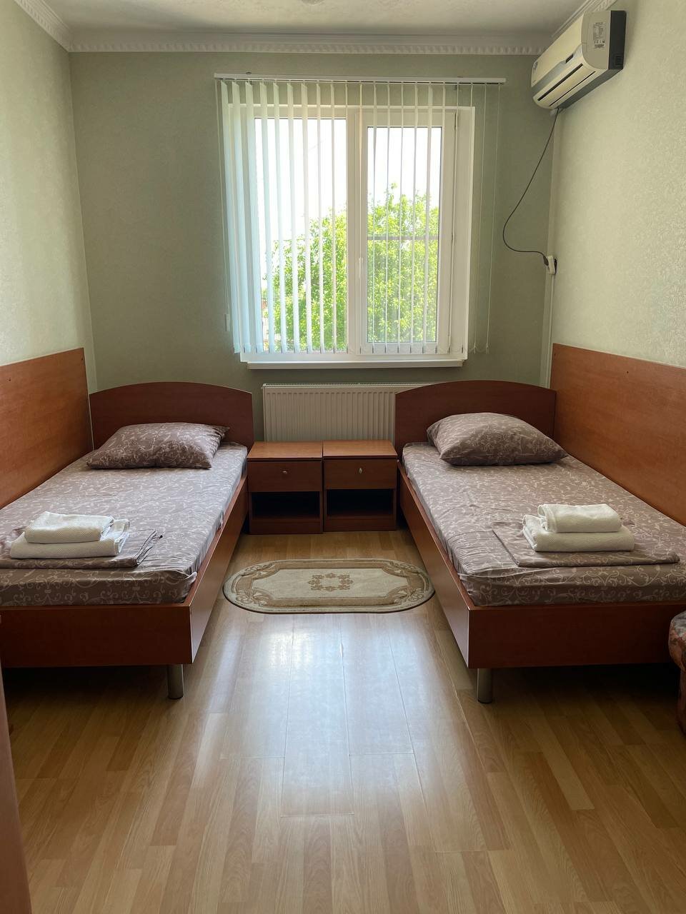 Уютный номер на 1-4 человека , в номере две раздельные кровати (можно сдвинуть) и диван раскладной, ТВ, чайник,холодильник, кондиционер, туалет/душ в номере