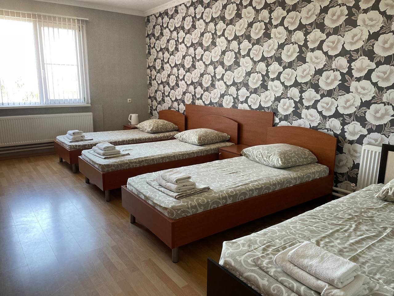 В номере 4 раздельные кровати , ТВ , кондиционер, чайник, туалет/душ на этаже. В гостинице имеется закрытая парковка. Имеется кухня , которой гости могу воспользоваться