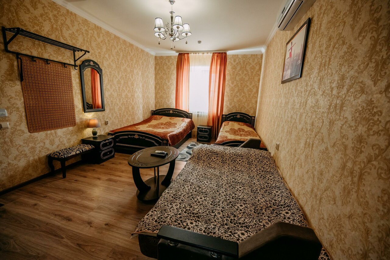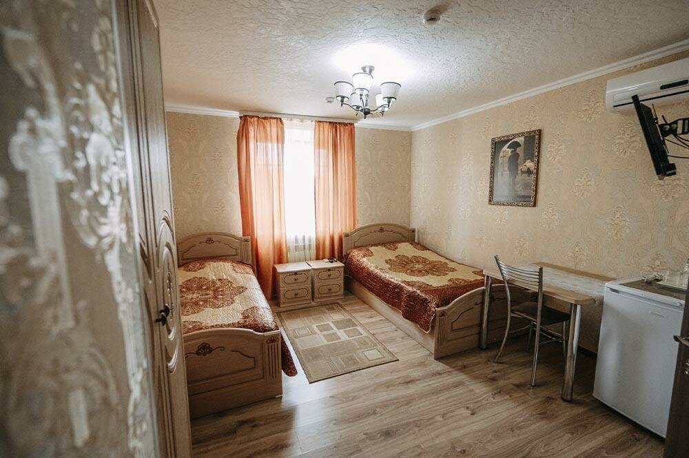 В номерах «Стандарт» есть все необходимое для комфортного пребывания и сна: телевизор, холодильник, кондиционер, собственная ванная комната, фен для волос, бесплатный Wi-Fi.