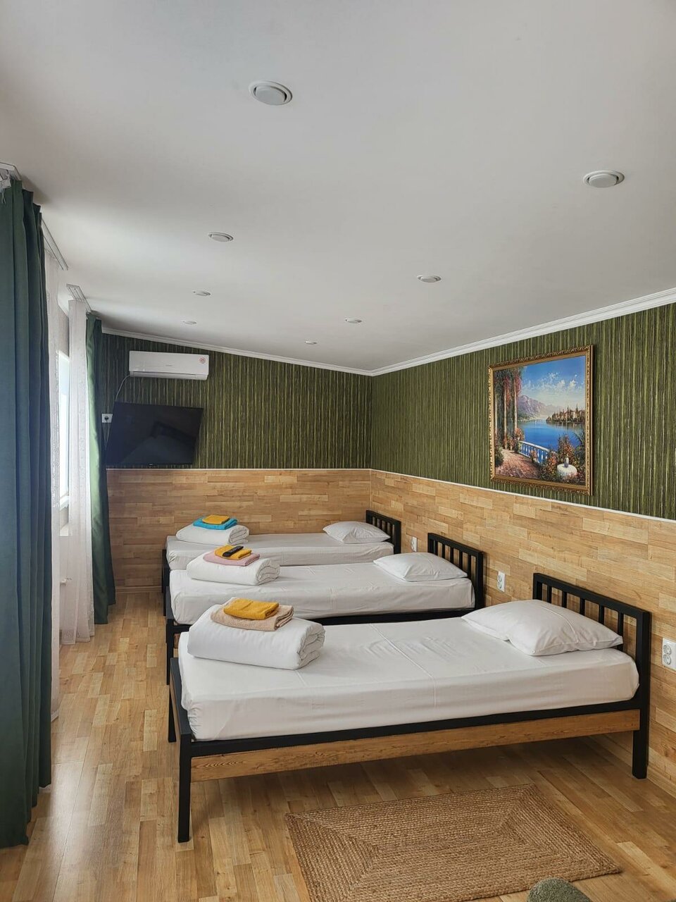 Особенности: — Расположение: в центре (до 1 км), рядом с парком. — Обновлённый интерьер (реконструкция 2023), звукоизоляция, номера для некурящих. — Нет бассейна, сауны, питания, но есть летняя веранда и общая кухня.
