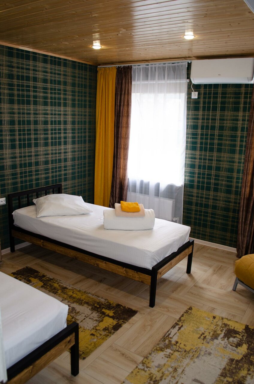 Шикарные номера,чисто и уютно! Душ и туалет в номере. Просторный двор,есть место под машину. Есть беседки и мангал) Приветливый персонал, можно постирать вещи за отдельную плату. На территории живут кошки, очень милые)))