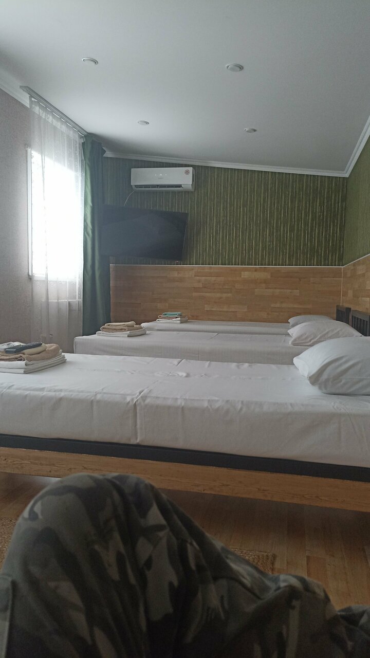 Хорошие номера, всё чисто, в номере есть небольшая кухня, кондиционер, закрытая парковка, душ, туалет, набор банных принадлежностей , персонал приветливый
