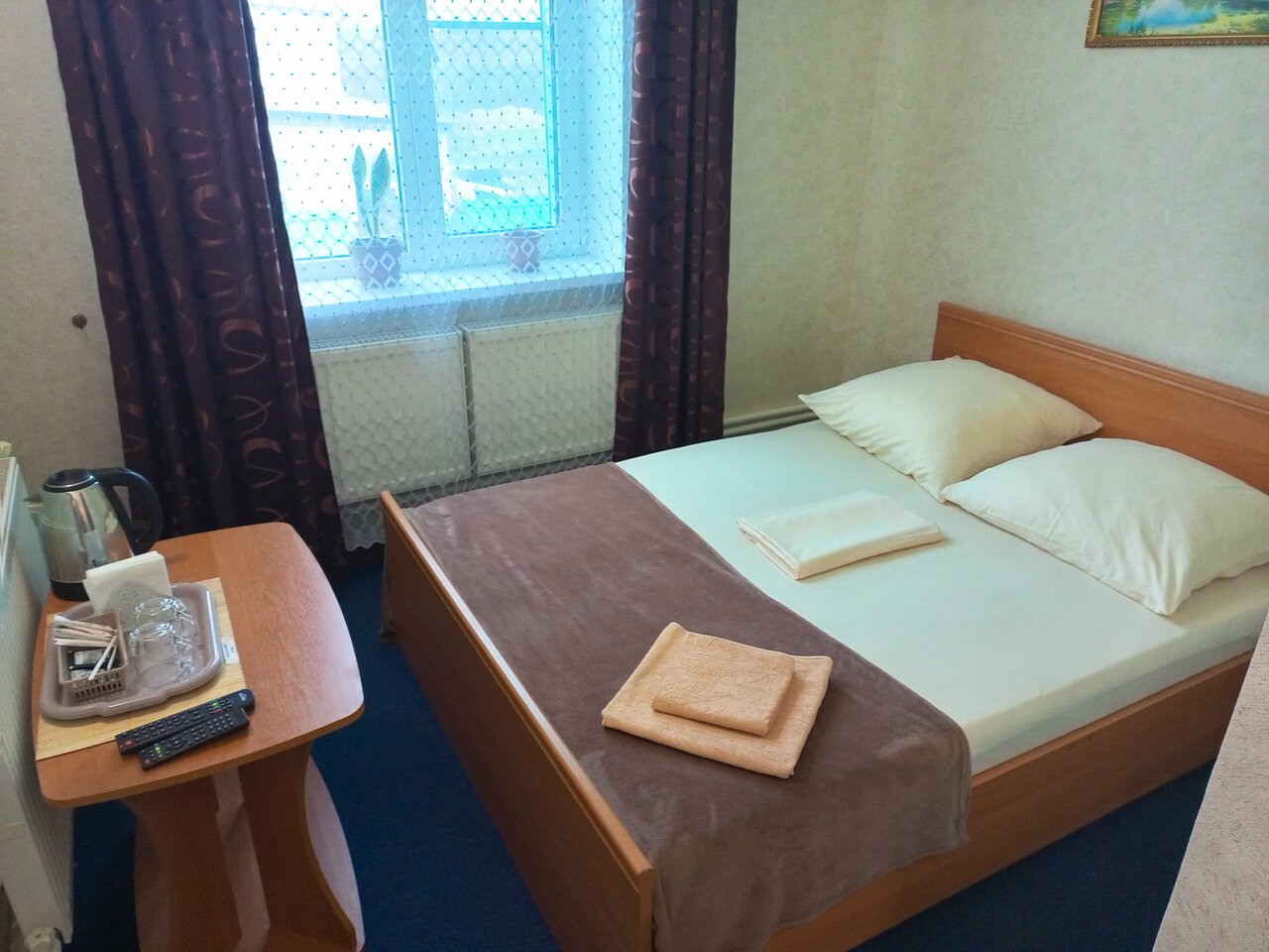 Оставались на ночёвку. Удобная локация, от трассы 5мин. Неожиданно приятное место. Номер большой, чистый, правда есть небольшой след от табачного дыма, но почти не ощутимо. Кровать удобная, подушки, одеяло, красивое постельное белье. Правда только полотенец на одного оставили. В номере чайник, чай, сахар,кружки. У девушки администратора попросила погреть еду, без проблем, плюс предложила тарелки. Есть кондиционер. Номер был на сторону проезжей части, но с улицы ничего почти не слышно. Зато изнутри да. Очень слышно как ходят по коридору, стучат дверьми. Слышно так же разговоры из соседнего номера. Если заселяться, то просить номер дальше по корридору и / или через номер,чтоб не слушать соседские разговоры. В целом неплохой вариант.