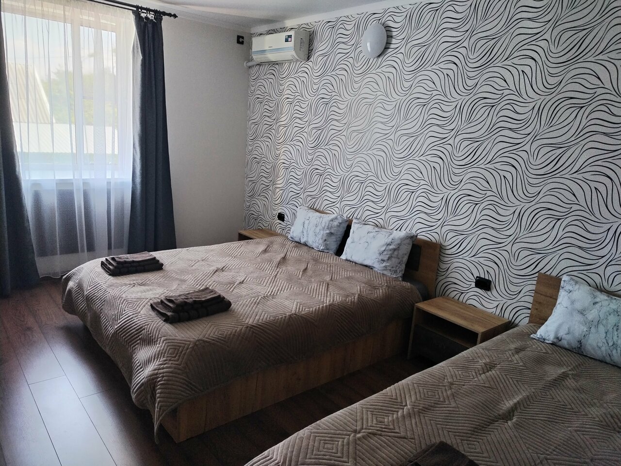 Выбрали данную гостиницу по отзывам, чтоб переночевать по пути на море , и не прогадали) Остались очень довольны, все новое, свежий ремонт, оооочень чисто, тихо, находится на окраине посёлка. Очень приветливый , доброжелательный персонал. У нас был трёхместный номер, в номере: 2 кровати, телевизор, кондиционер, шкаф, чай, кофе, посуда. Общая кухня, холодильник, микроволновка, всё есть. Санузел и душ общий, но мы в очереди ни разу не стояли, всегда было свободно. Порадовало, что парковка за забором. Нам так понравилось тут, что остановились потом и на обратном пути с моря) можно дополнительно заказать завтрак, очень вкусные блинчики! Если будет возможность, обязательно остановимся у вас ещё !!!