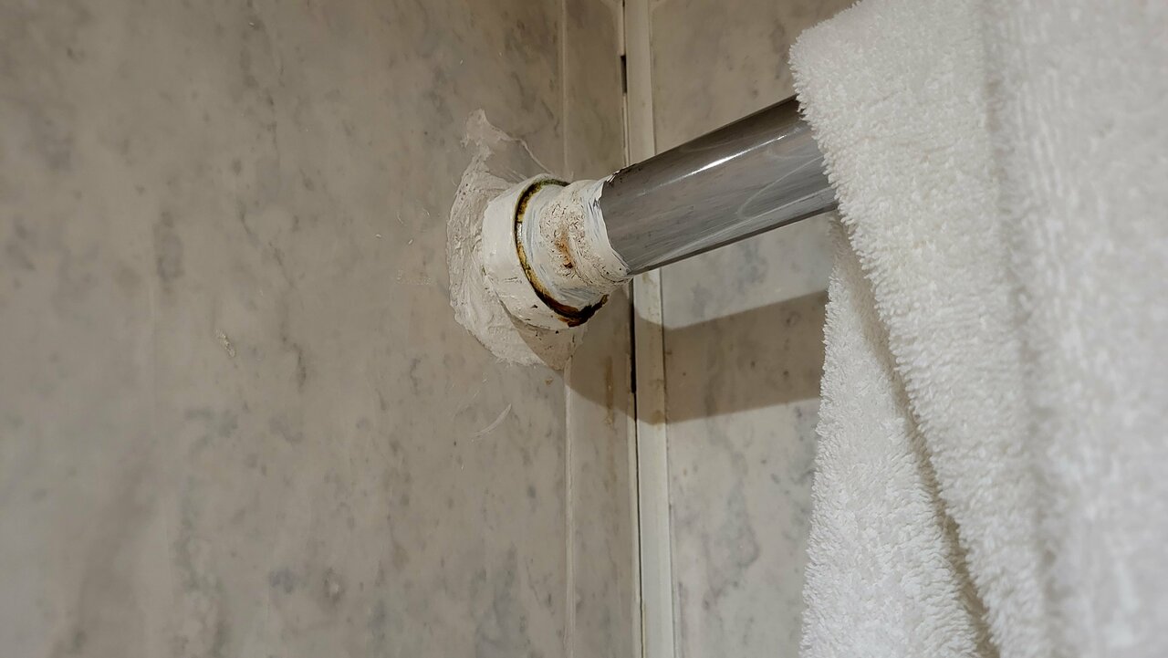 Тёмная ванная с одной лампочкой и ужасным убитым смесителем. Вода в душе то ледяная, то обжигающе-горячая. И так во многих номерах.