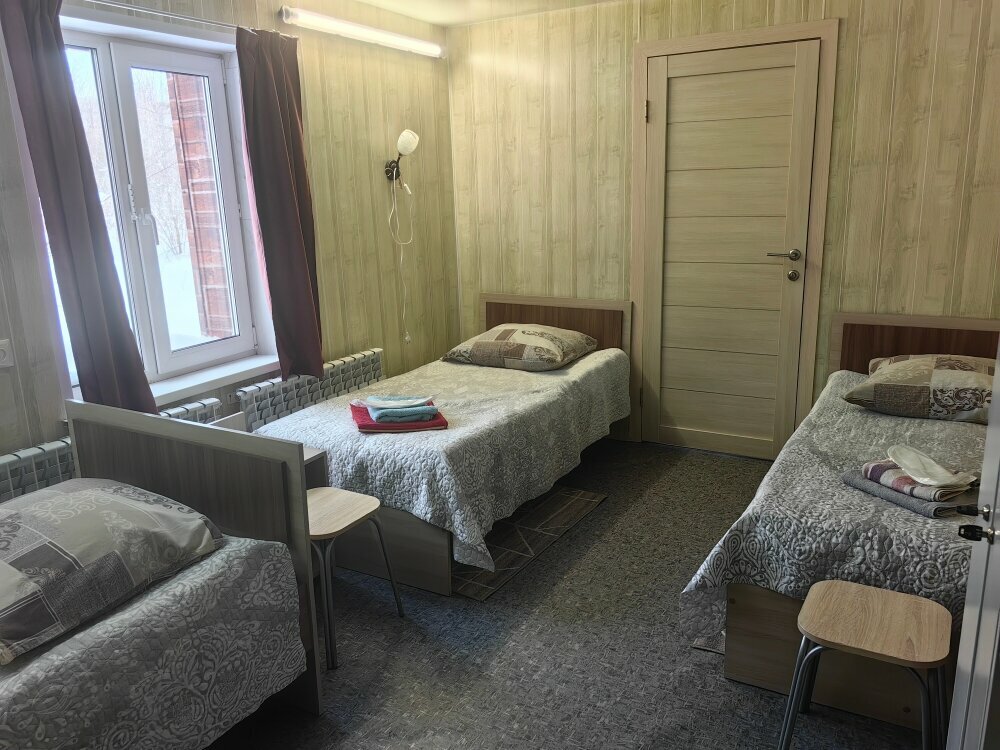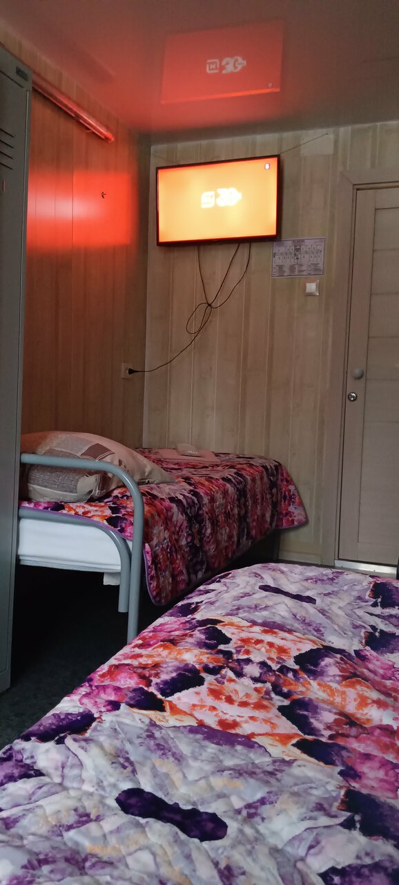 Хостел! Общажного типа. Чисто, убирают. Завтрак, обед, ужин. Душ, туалет. Есть возможность выходить на перекур. Все постояльцы: вахтовики! Такой ‘Северный’ интерьер. Минимализм. Хороший персонал. Начальник норм!