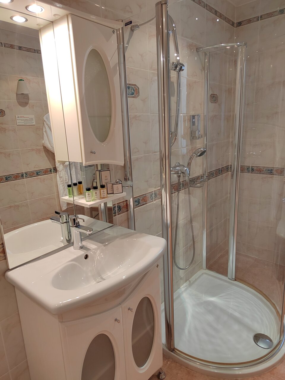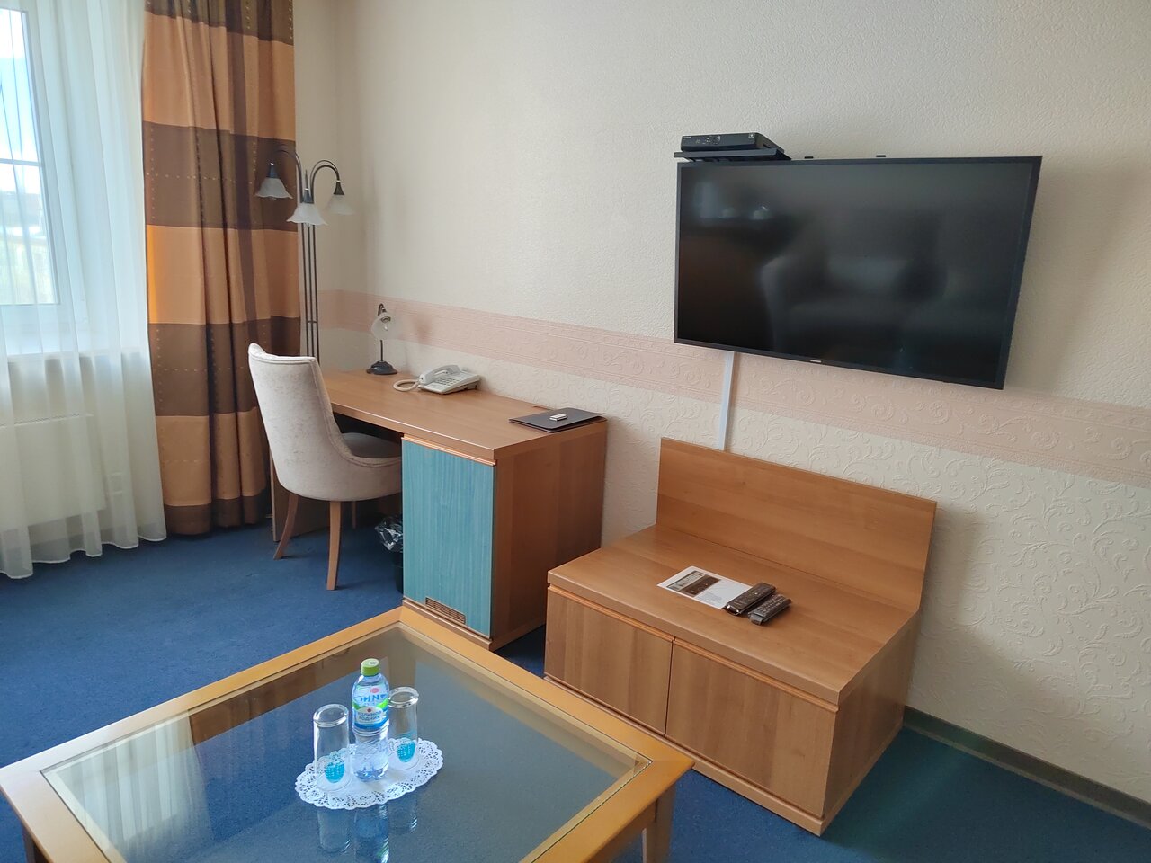Интерьер комнат хороший, матрасы прекрасные, всё чисто. Ванная — привет из совка: пластиковые панели и шторки. Персонал молодцы.