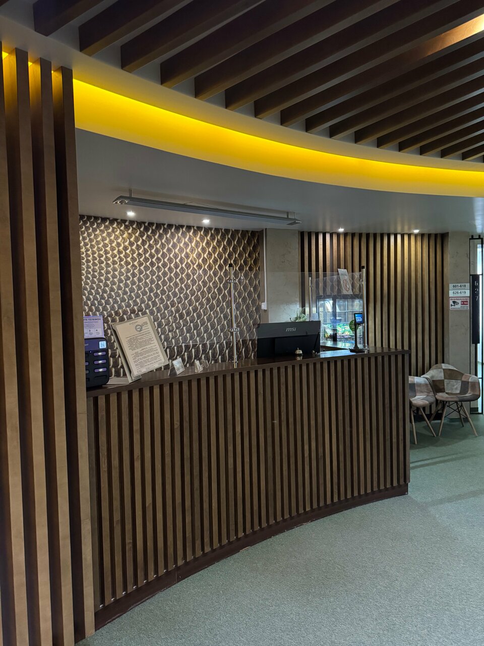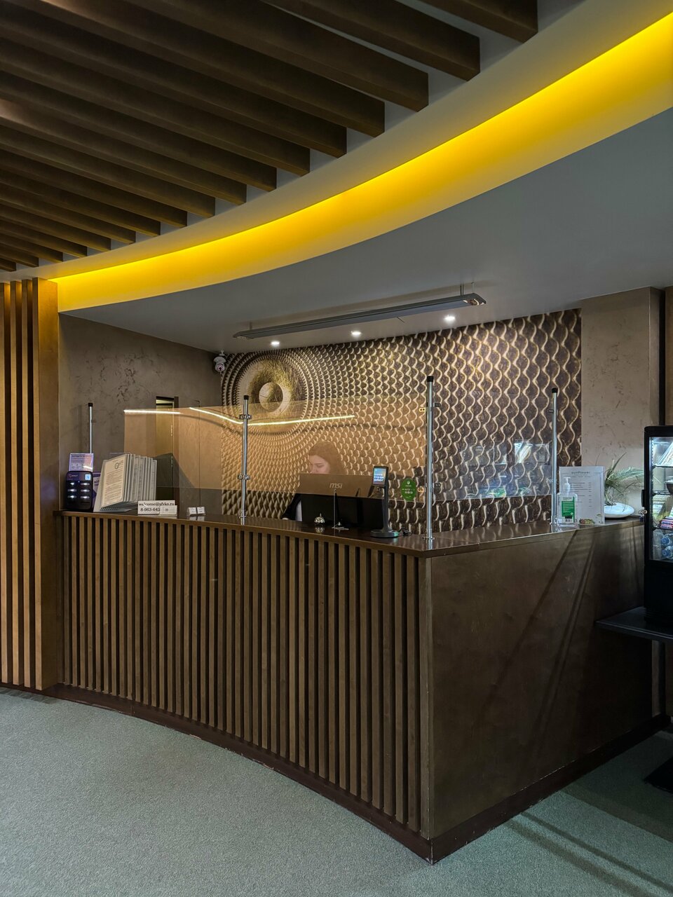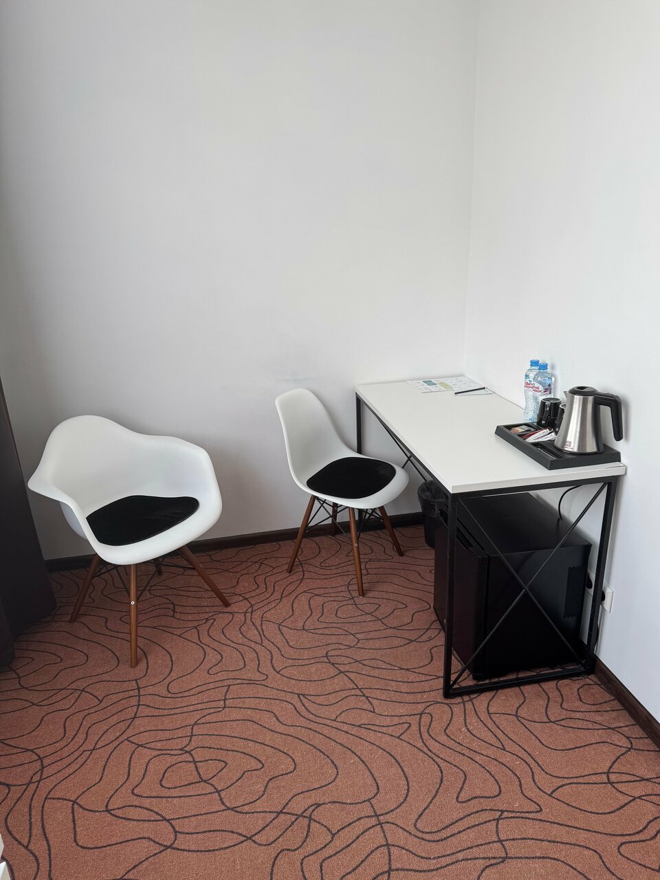 Девочки на ресепшен молодцы. Хоть заезд был в 24 часа, были внимательны, при позднем выезде помогли вызвать такси. В номере чистое бельё… и на этом всё. Включите воображение. Ночь, вы женщина и у вас два тяжёлых чемодана.. и вот открыть дверь в гостиницу это отдельный квест. Она ооочень тяжелая (пустяк… но очень неудобно). В номере пахло едой (наверно это был бонус к номеру).. А вот утро принесло незабыввемые впечатления. Напоминаю, что у гостиницы 4 звезды. Поэтому мешки с мусором в коридоре это украшение (выезжала в 16 часов, их так и не убрали). И очень громкий разговор уборщиц в коридоре (кажется они выясняли кто что не сделал). Так что если у вас цель поспать между длительными авиарейсами, это точно не та гостиница которую я выберу в следующий раз.