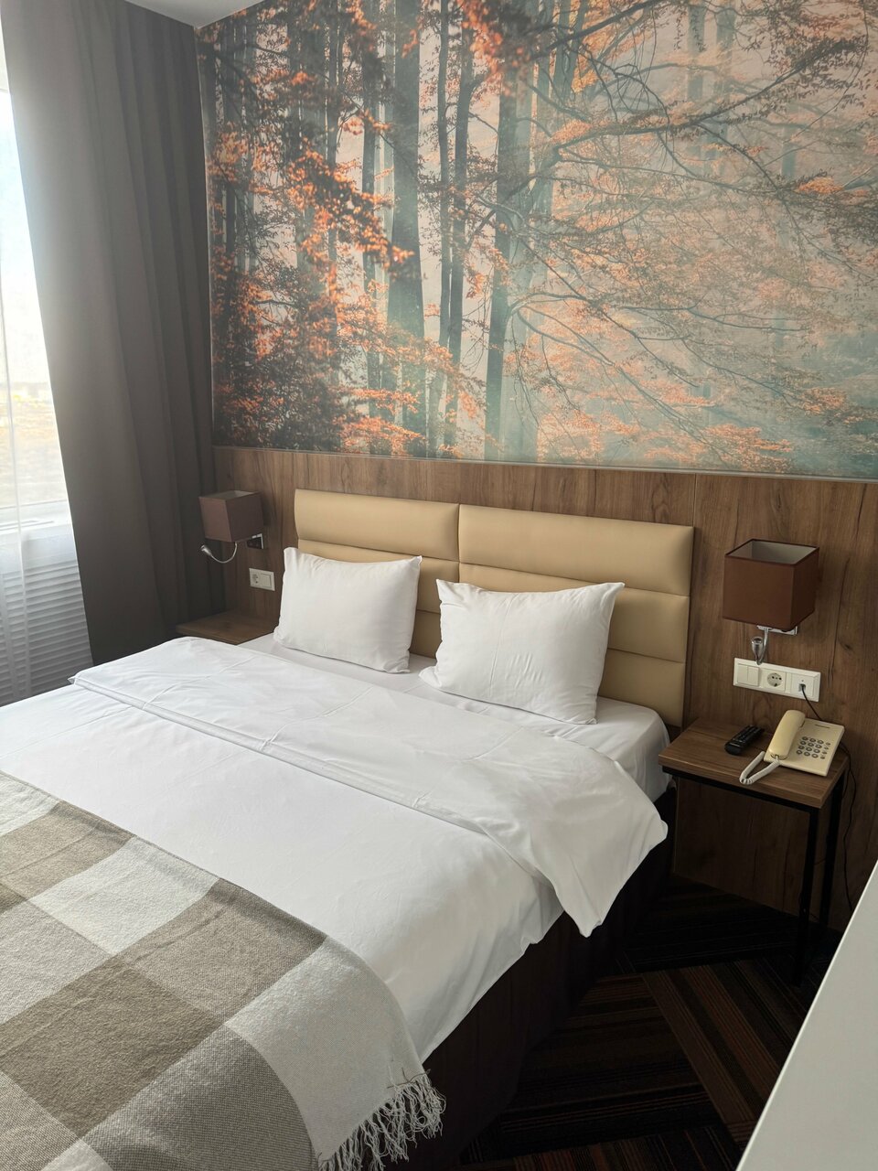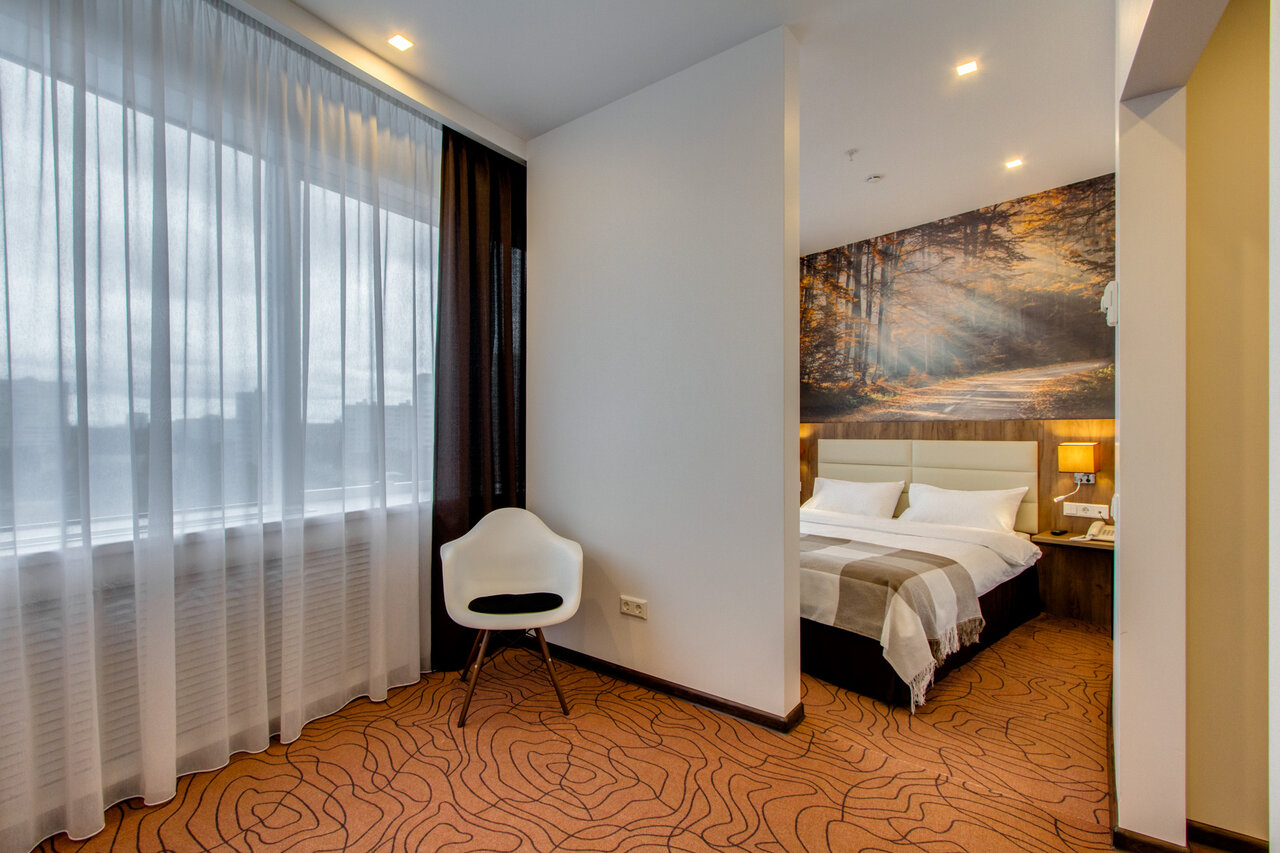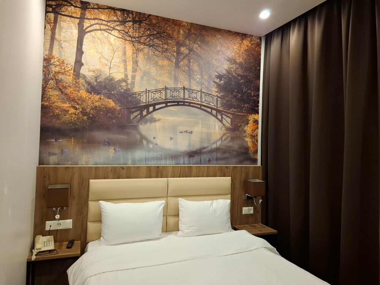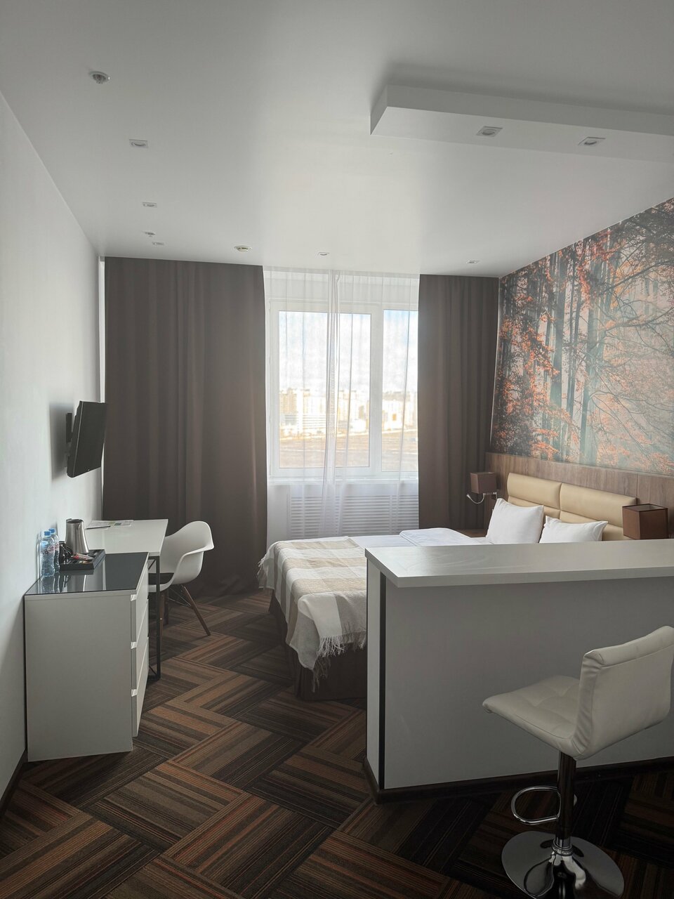 Хорошее место! Чисто и опрятно. Просторные и непрокуренные номера. Вежливый персонал. Уборка в номере ежедневно. Завтрак включен в стоимость. Стоимость номеоа более чем адекватная. Отел расположен в ТРЦ на 6 этаже, в связи с чем несколько затруднена навигация. Огромная бесплатная стоянка.