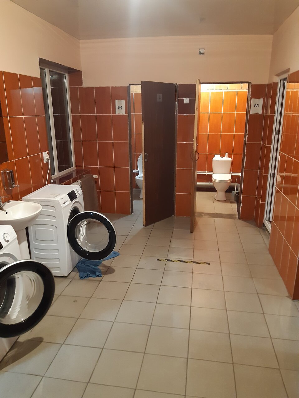 - Общие душевые и туалеты.