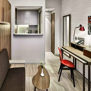 Хороший апарт отель, по близости все необходимое для комфортного пребывания на длительной срок Рядом метро, ТРЦ с большим выбором ресторанов и магазинов, есть кинотеатр, продуктовый магазин с относительно приемлемыми ценами. По близости несколько аптек и салонов красоты разной ценовой категории