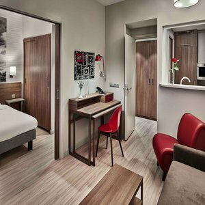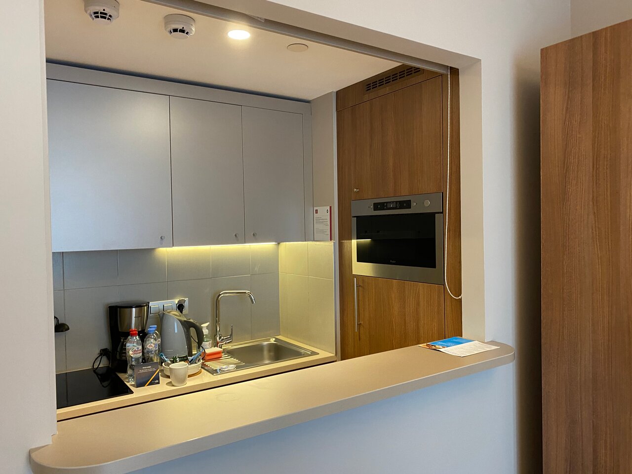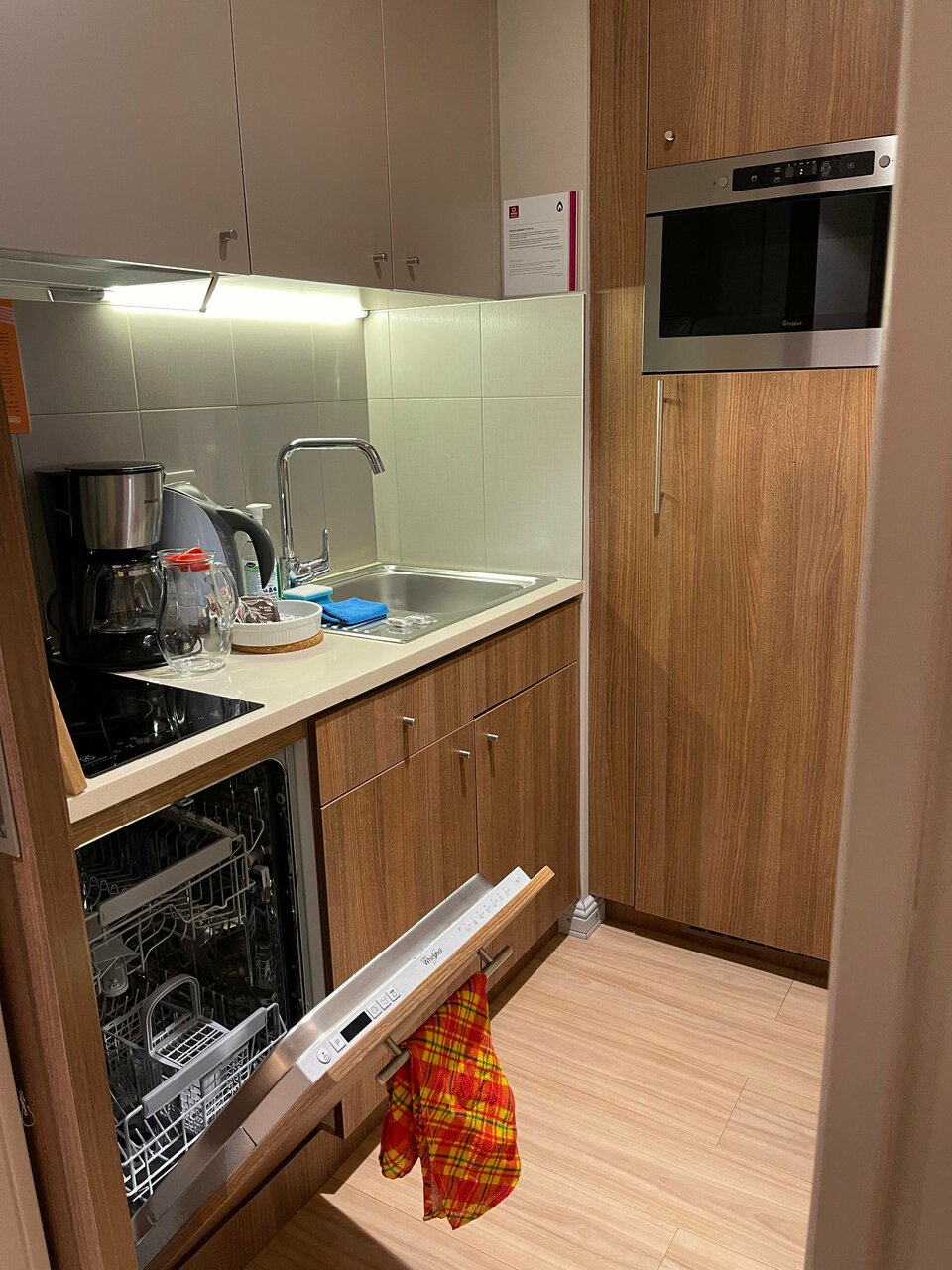 Отличный бизнес-отель. Номер свежий, кухня с посудомойкой, холодильником, микроволновкой и всей посудой и чайником приятно удивила! Завтраки отличные, широкий выбор на любой вкус, пол и национальность гостей) вид из окна как огромный бонус
