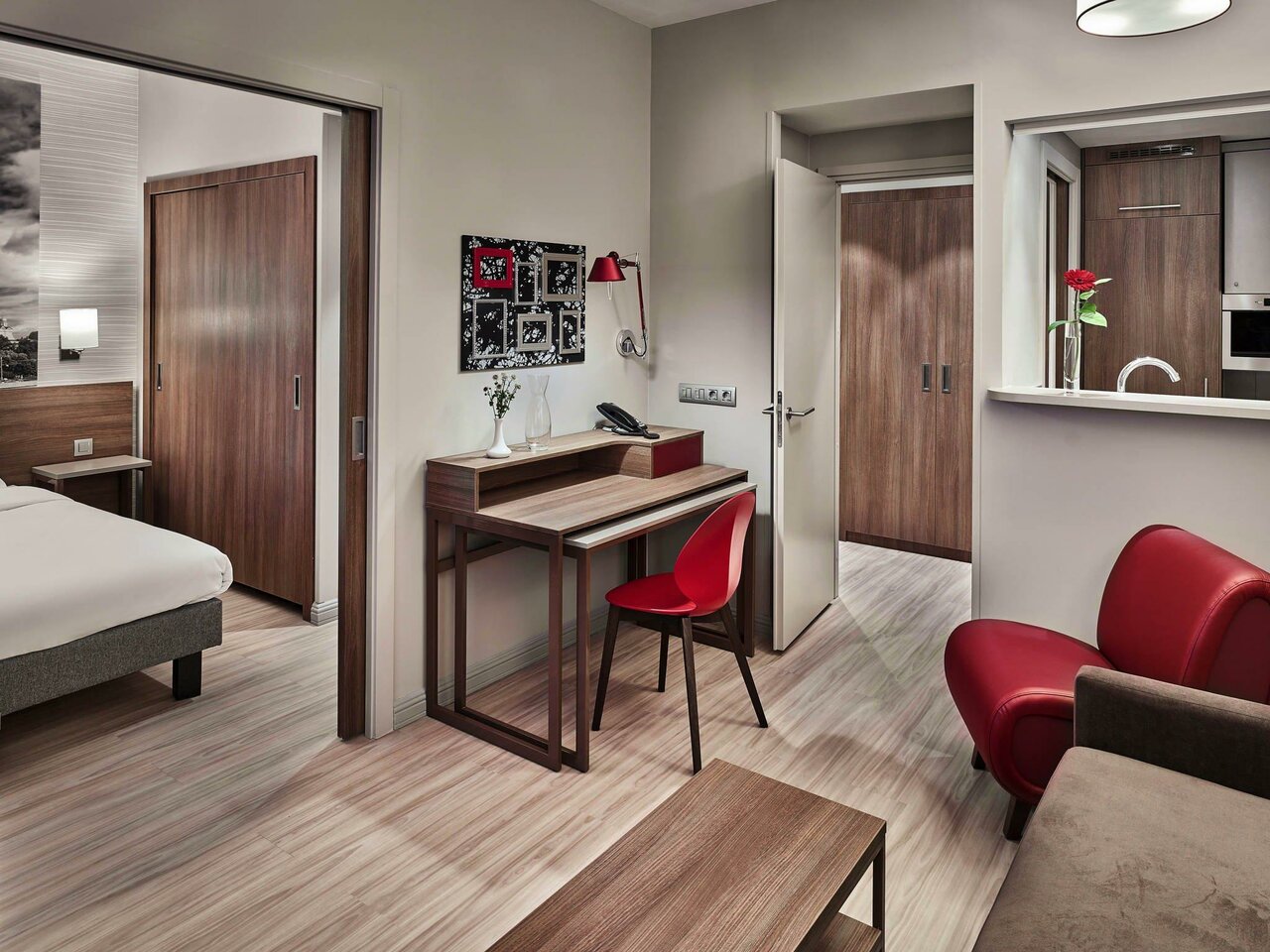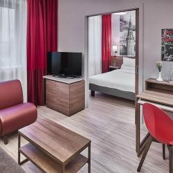 Хороший отель. Достаточно новый, номера просторные, чем в классическом Ибисе и Адажио ( в Новотеле не останавливались). В номерах апарт-отеля есть все необходимое для приготовления — мини-кухня и посуда. Отзывчивый и быстро реагирующий на все просьбы персонал. Очень удобное расположение- 2 шага до станции метро (3 направления) и самого киевского вокзала. Можно и прогуляться пешком — до арбата 15-20 минут пешком, 20 минут до москва-сити, 10 до гостиницы Украина с причалом (можно отправится на входную экскурсию). В номерах чисто, уборка каждый день, по запросу халаты и доп принадлежности. Отличный бассейн и хороший тренажёрный зал. По поводу завтраков сказать не могу, готовили сами, но есть бары 2 часа и 2 варианта завтраков в Новотеле и в Ибисе.