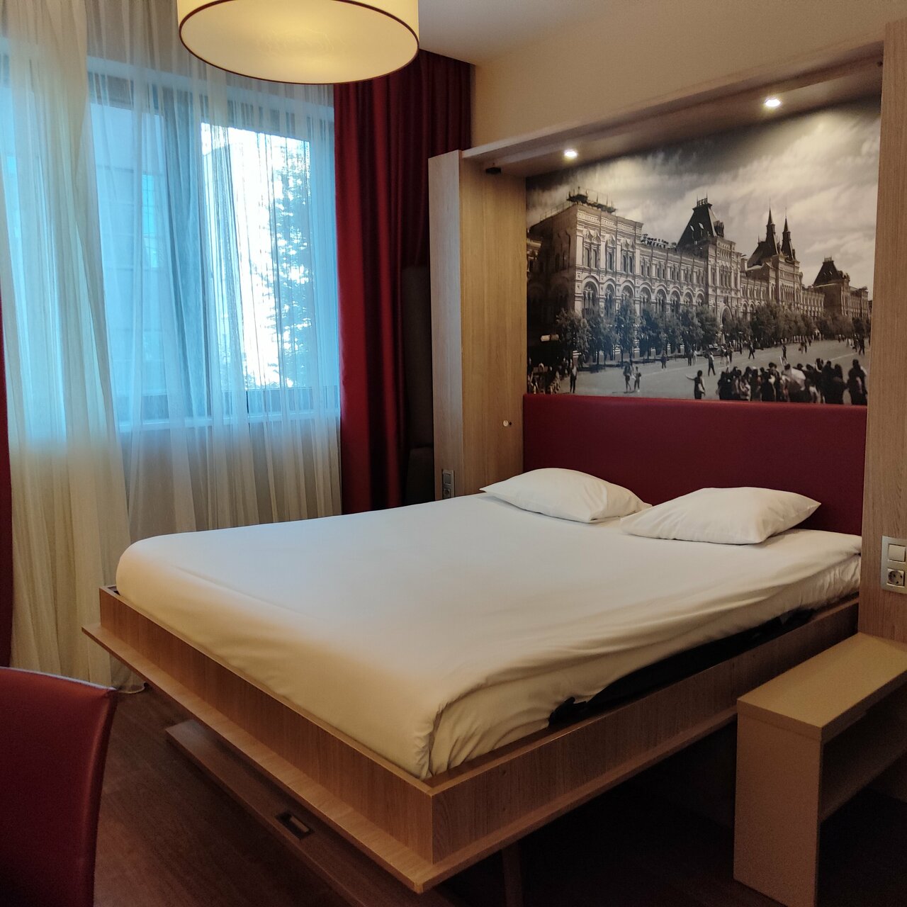 В целом, отель понравился, хорошее соотношение цена/качество. Из плюсов: расположение — относительно недалеко станции метро Павелецкая и Новокузнецкая, наполнение номера — есть всё для комфортного проживания, миникухня с чайником и кофеваркой и гладильная доска с утюгом, удобные по жесткости матрацы, уборка и смена полотенец каждый день, приятный персонал на ресепшн. Из недочетов — не было халатов в номере, но, по просьбе, быстро принесли, и вид из окна — на фото. Спасибо за ваши услуги!