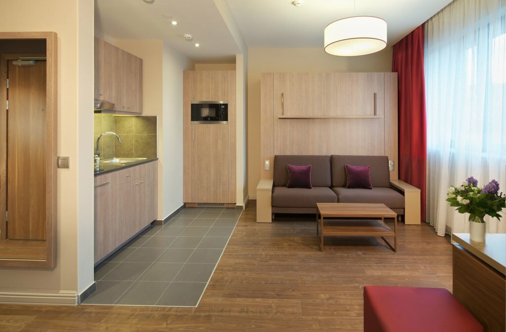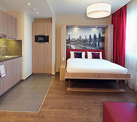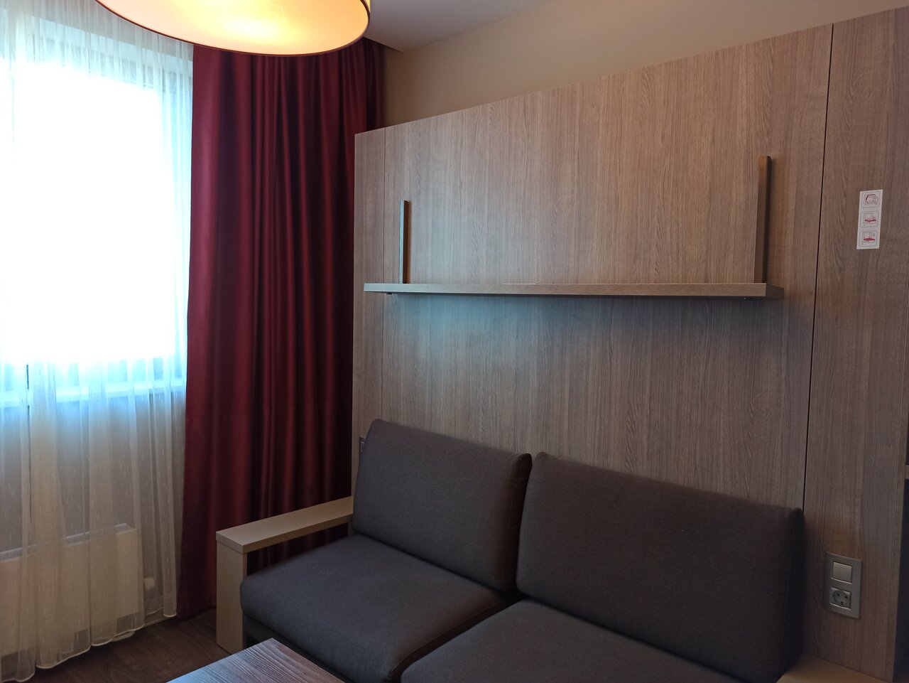 Очень приятный апартотель.Квартира-студия не большая,даже кровать откидывается на день.Но есть все необходимое. Чисто,тихо,современно.Рядом много кафе,магазинов и транспорт в шаговой доступности.До Кремля 30-40 минут пешком.Люблю этот район и сейчас он обновляется и реставрируется.