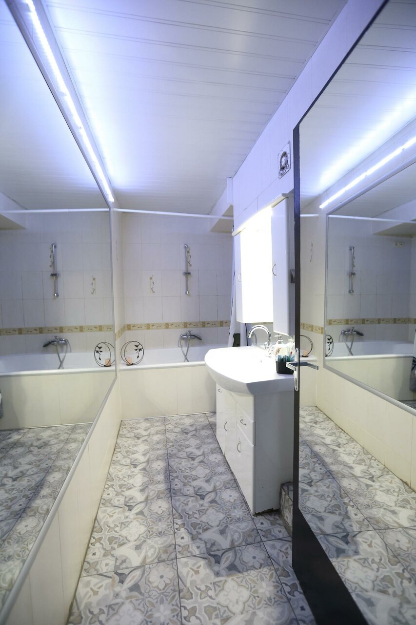 Из плюсов только месторасположение. Почему то , ни один человек писавший отзывы, не написал про горячую воду. Невозможно настроить лейку, либо кипяток , либо ледяная вода. Два душа и два туалета на этаже, очереди никогда не было. Но искупаться тот еще квест! Приходилось ходить с ребенком постоянно настраивать, в связи с чем вода льется рекой! Сами номера на любителя!