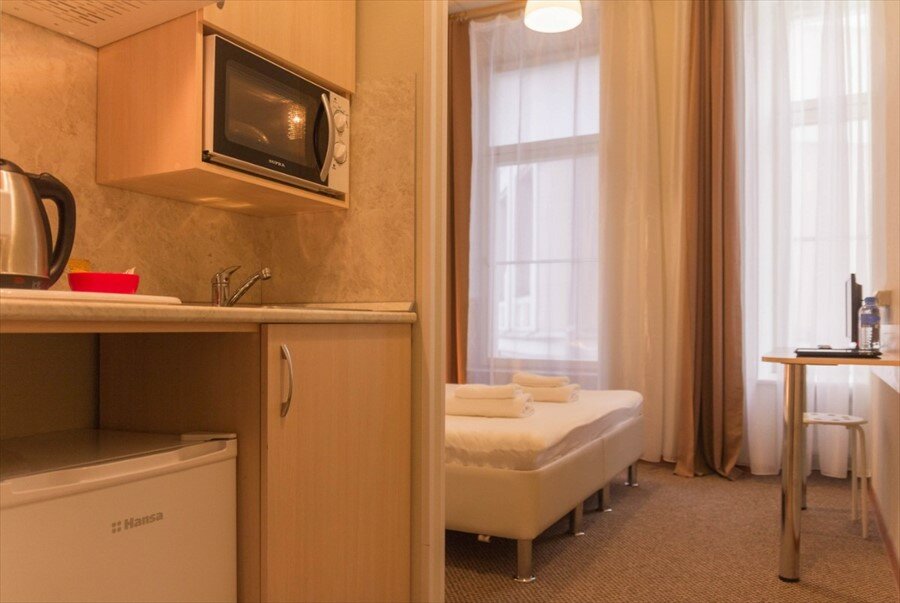 - Наличие чайника, микроволновки, минимального набора посуды.