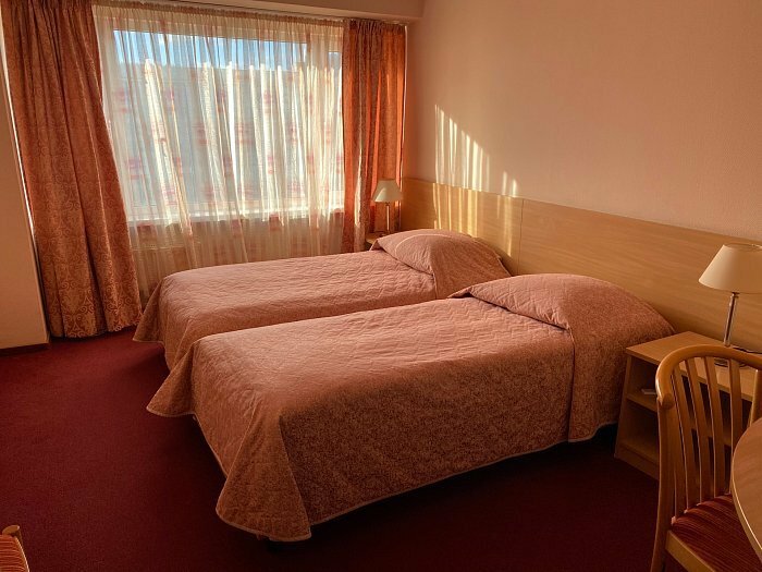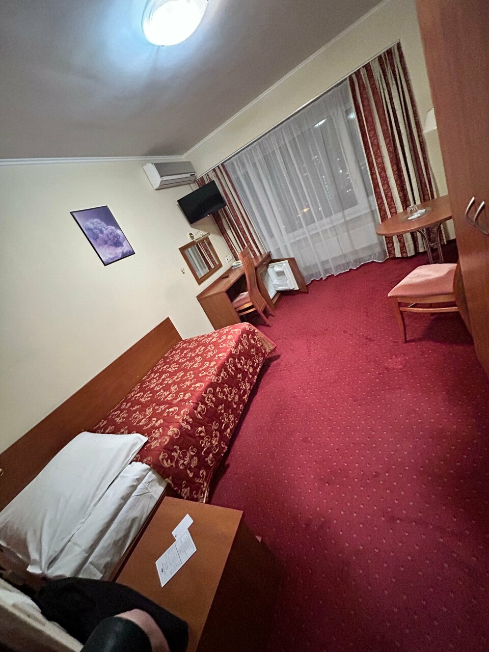 В целом, неплохая гостиница, хорошее расположение, достаточно чистый номер, но на огромное здание работает всего одна гладильная комната, где всего один утюг, конечно же погладить вещи у меня не получилось