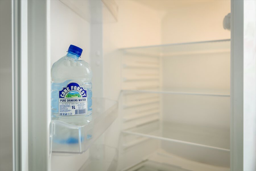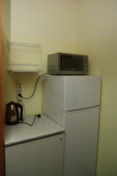 - В номере есть холодильник, микроволновка, чайник, посуда.