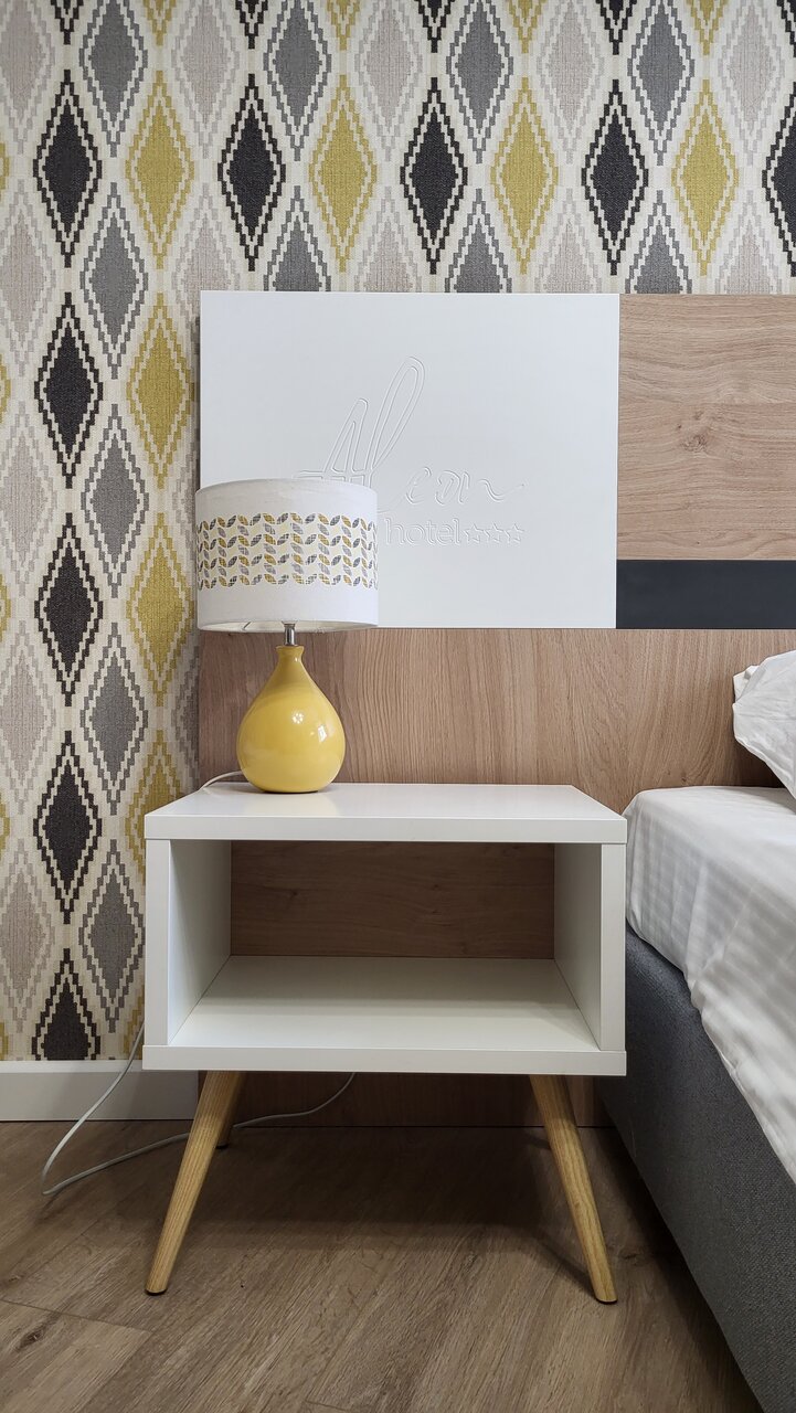 В номере: кровать 160х200 с ортопедическим матрасом, гипоаллергенные подушка и одеяло, плоский телевизор, кондиционер, фен, душевая кабина, чайный набор, письменный стол для работы с эргономичным стулом, мягкие полотенца, халат, тапочки, минеральная