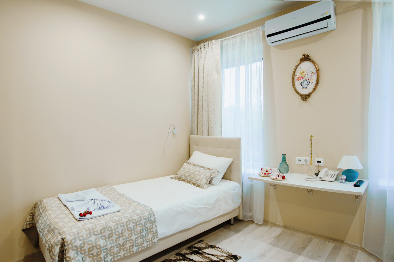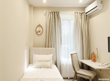Номер рассчитан на одного человека - прекрасное сочетание цены и комфорта. Апартаменты выполнены по индивидуальному дизайну и имеют общую площадь 12 м2.