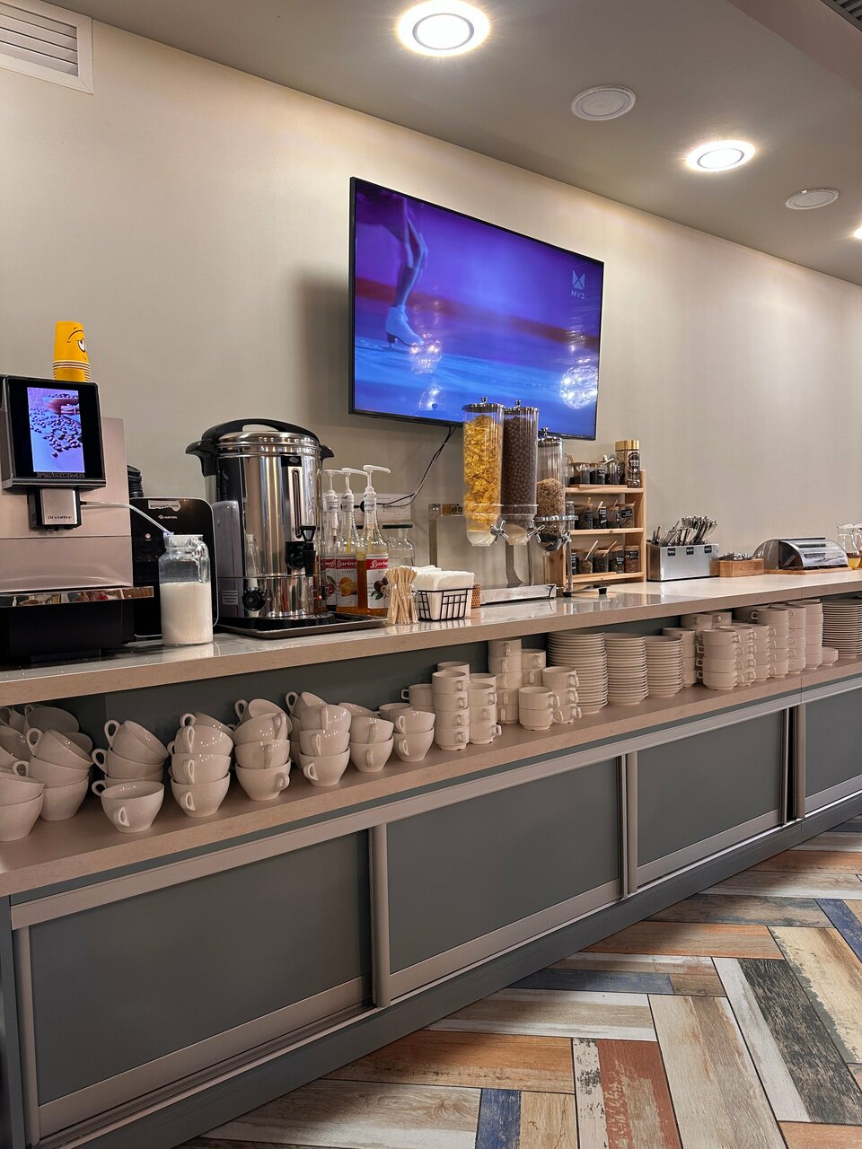 Завтрак вкусный, кофе молотый, чисто, обслуживание хорошее. Персонал приветливый. Номер хороший, свежий. Детские уголки, лифт. Расположение не далеко от метро.
