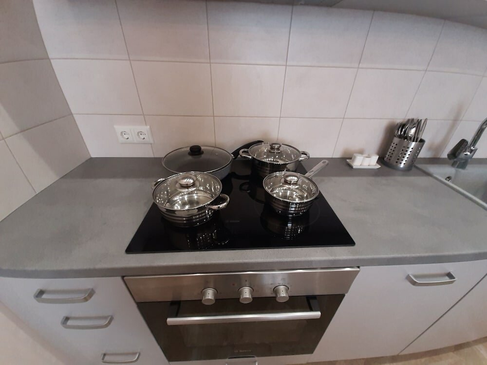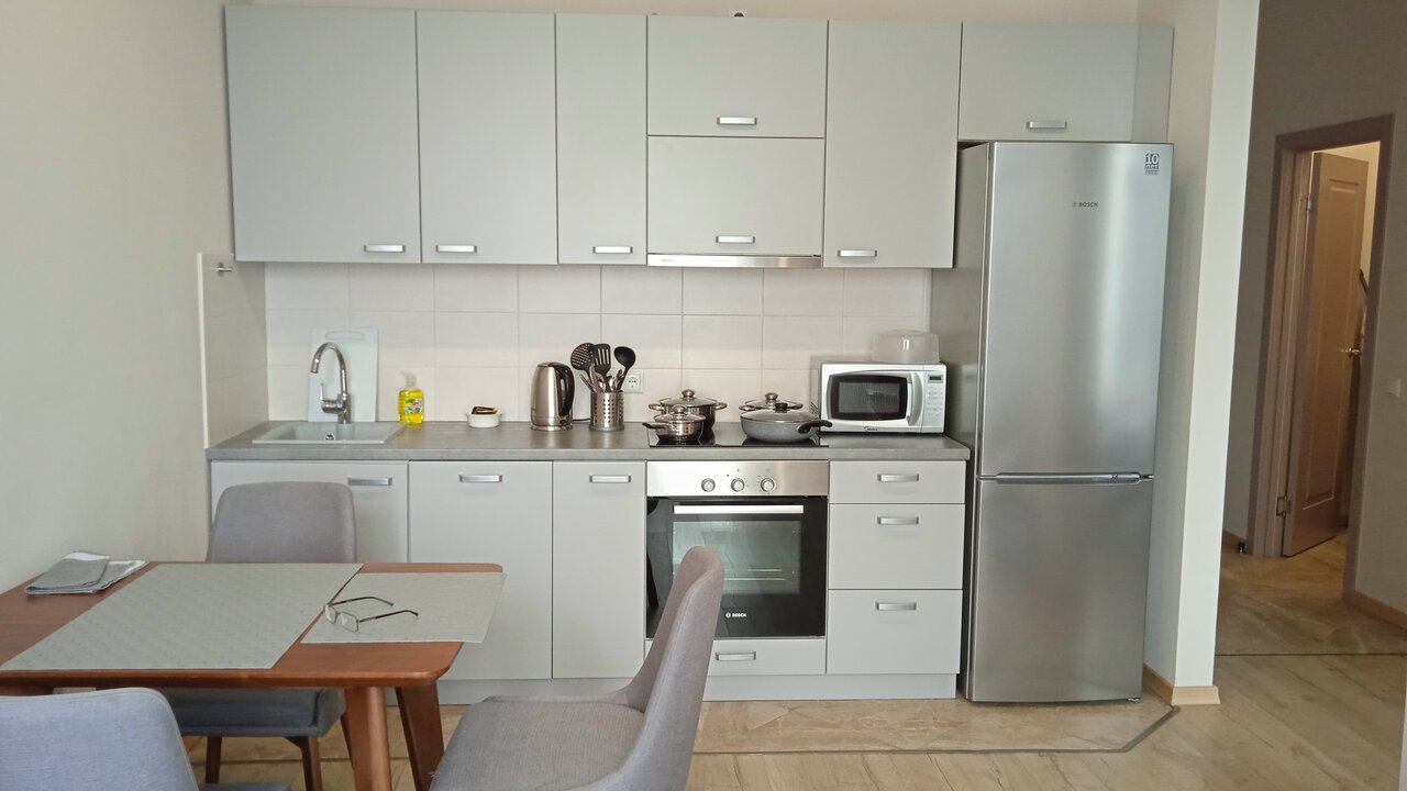 - Хорошая оснащённость номеров (кухня, техника, стиральная машина).
