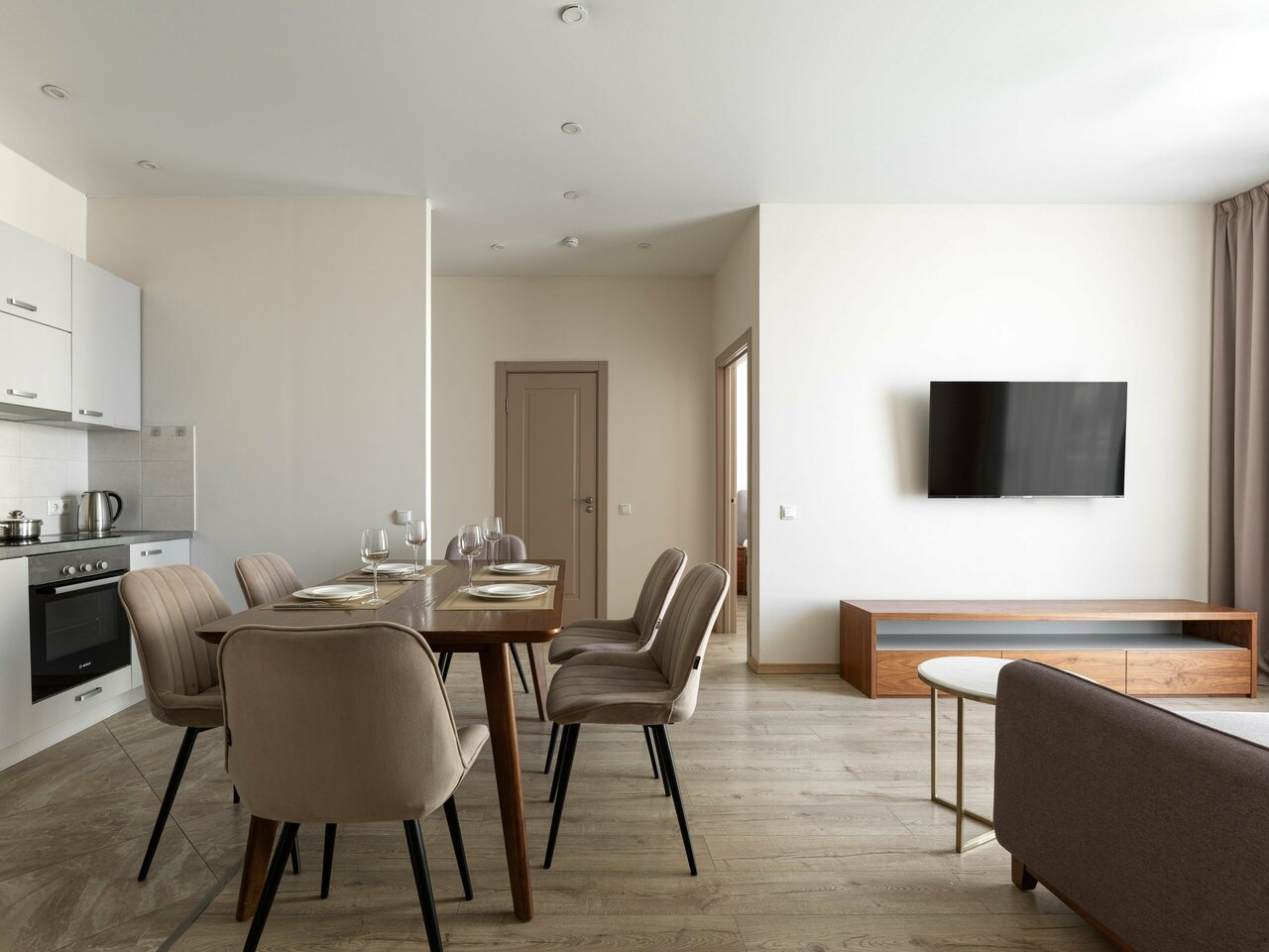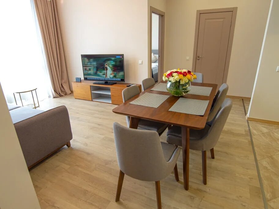 Самый лучший апарт в каком только мне приходилось жить!!! Замечательно всё, чистота,комплектация впечатлит своей функциональностью. уют,персонал,есть парковка подземная,шикарный ресторан