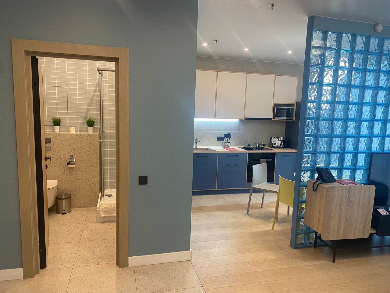 Понравился отель. Чисто. Интерьер хороший. Порадовала кофеварка, посудомойка и стиральная машина) По домашнему. Спасибо.