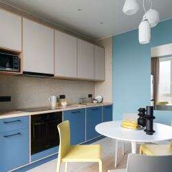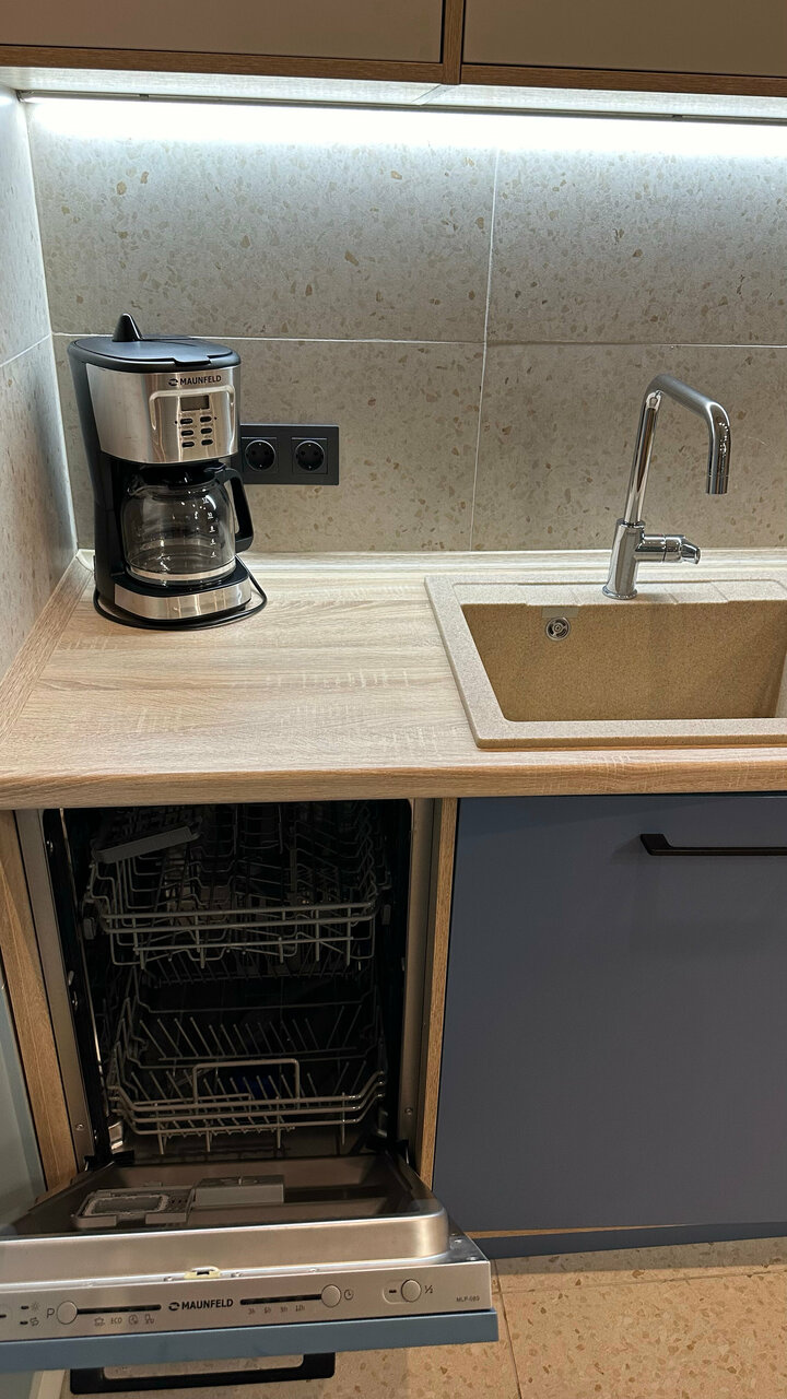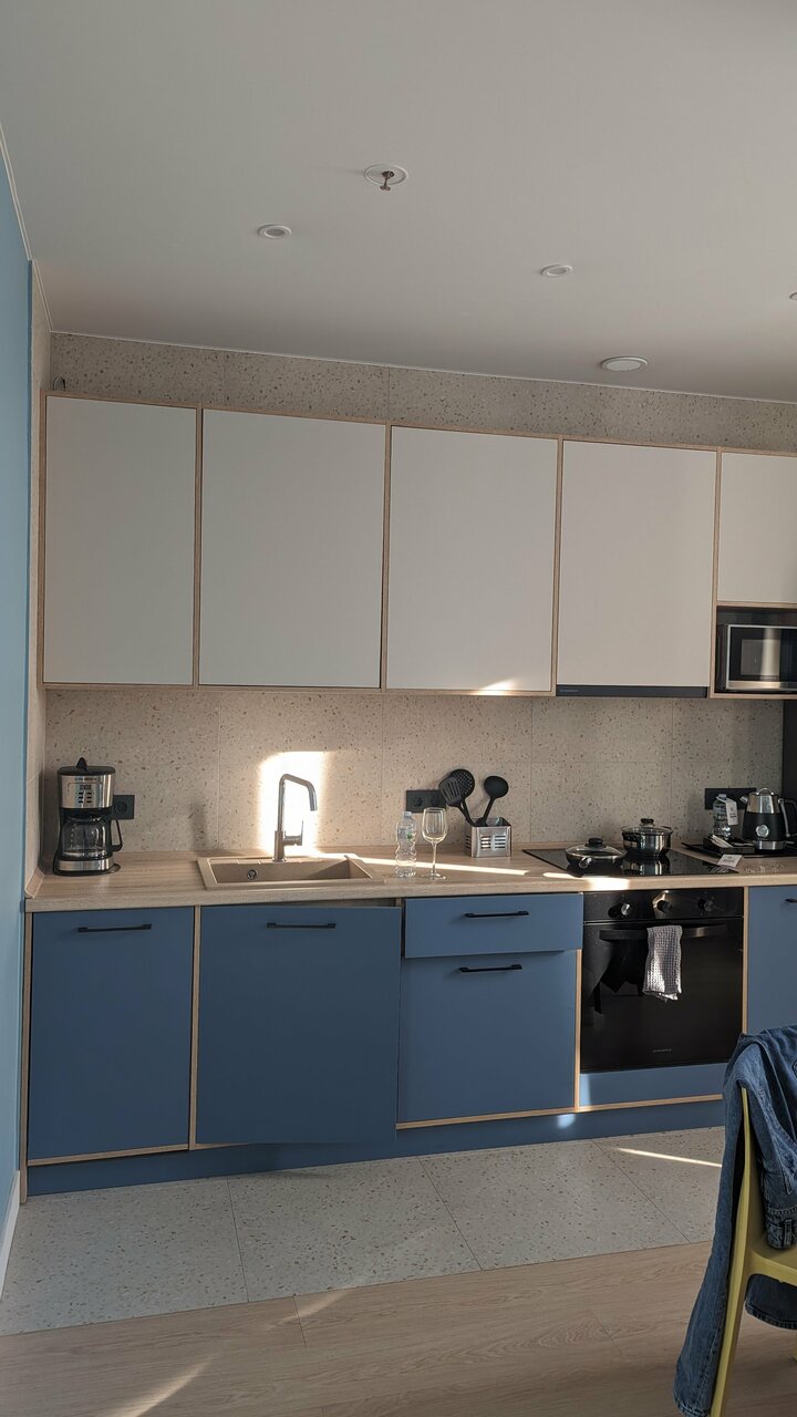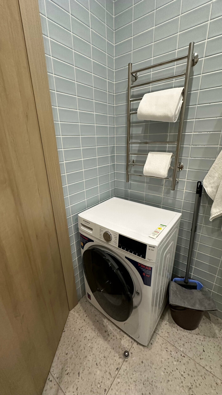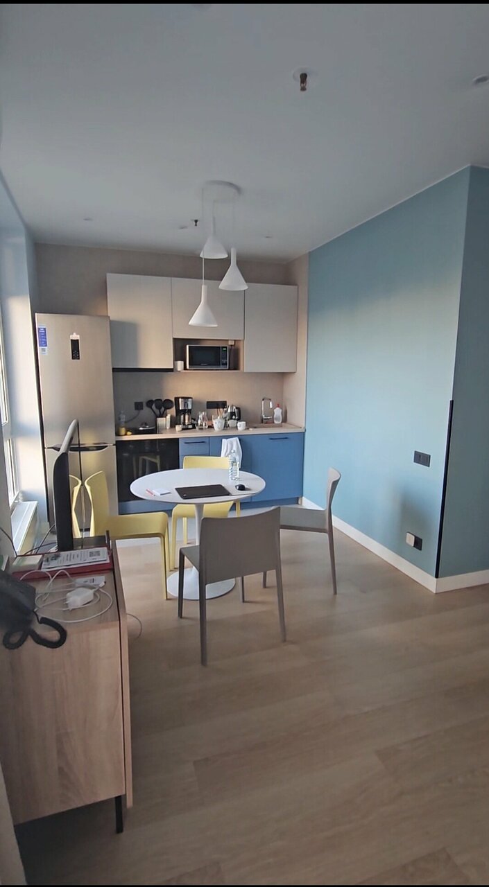 Новый апарт-отель, видимо открылся совсем недавно. Удачно расположен, неподалёку станция метро Октябрьское поле и станция МЦК Зорге. Рядом с отелем магазин перекрёсток и ВкусВилл, автомойка и барбершоп (в соседнем здании). Номер с современным ремонтом, вся техника (стиралка, посудомойка, микроволновка, холодильник). Есть даже духовой шкаф и кофемашина. Минусы: - очень маленькая парковка, почти всегда нет мест; - два маленьких лифта, грузовой не работает. У правого лифта заклинивает двери, но администрация отеля предупреждает что если лифт отключают нужно идти пешком; - несколько раз выключали горячую воду; - плохо сделана душевая кабина (пробегает) и очень плохо сделан слив (совсем не уходит вода); - капает вода из кондиционера при включении; - за 5 дней не было уборки ни разу