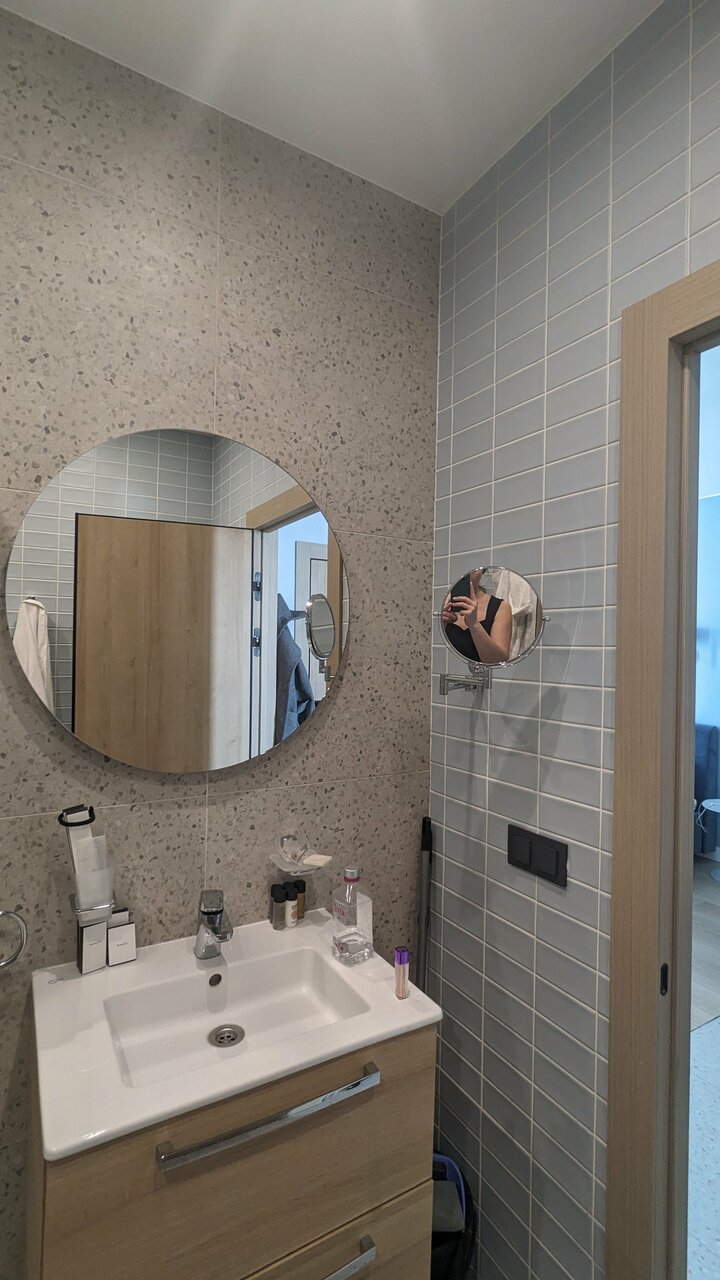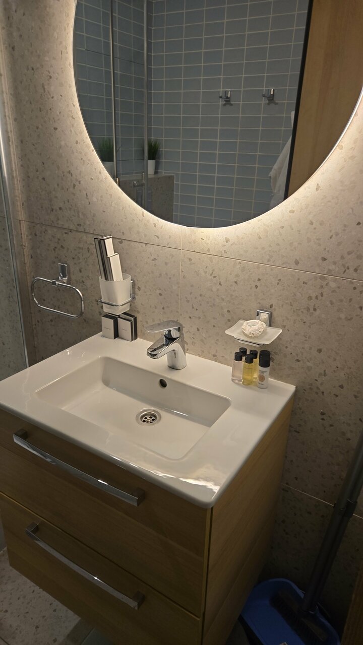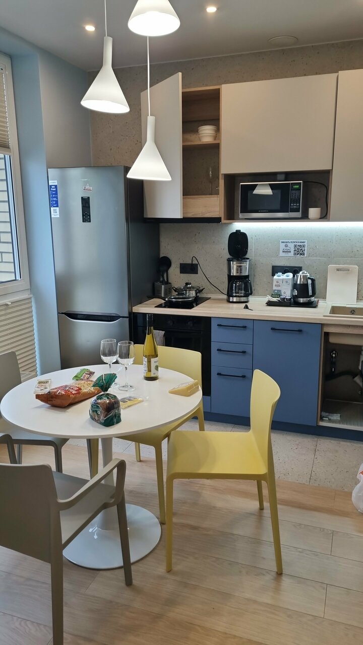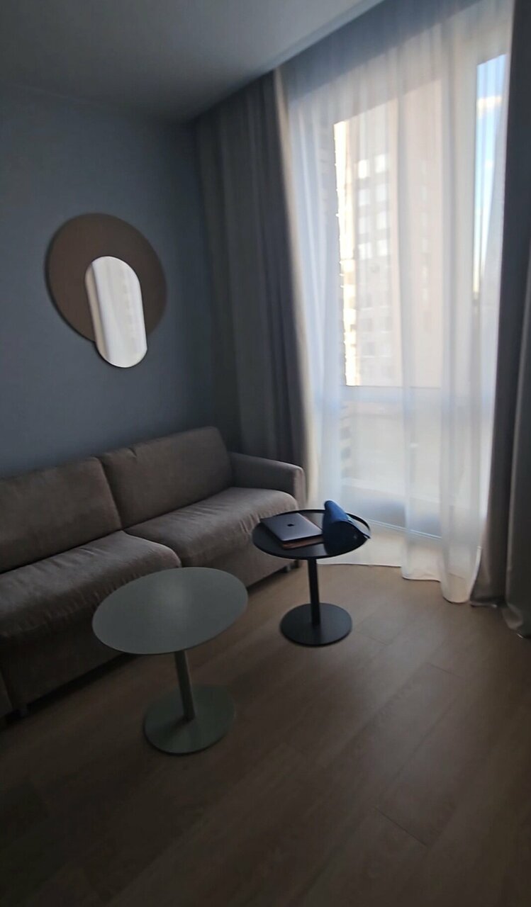 Снимали номер на троих, я, муж и дочь. Отель неплохой, но в номере грязновато, видно, что открылся недавно, но под кроватью вековая пыль, слив в душевой плохо пропускает воду, фасады кухни и обеденный стол со сколами и подтеками, дочь спала на диване с очень жесткими пружинами, мне казалось, что в таких номерах должна быть умная колонка, но это я может придираюсь. Из посуды всего одна маленькая кастрюля, бокалов для вина или рюмок нет вовсе. У нас в номере один раз прибрали, но зачем-то забрали два крохотных кусочка мыла из ванной и полотенце для ног, на которое мы вставали после душа, если бы я не брала с собой из дома мыло, то этих двух кусочков мне навряд ли бы хватило.Но! Персонал очень вежливый, в ванне, при въезде обратили внимание, что ручка двери почти отвалилась, тут же пришёл мастер и всё починил. В номере было всего два банных полотенца, я попросила полотенце для дочери, его тут же принесли. В целом неплохо, шикарная детская площадка во дворе, приятное место, метро близко!