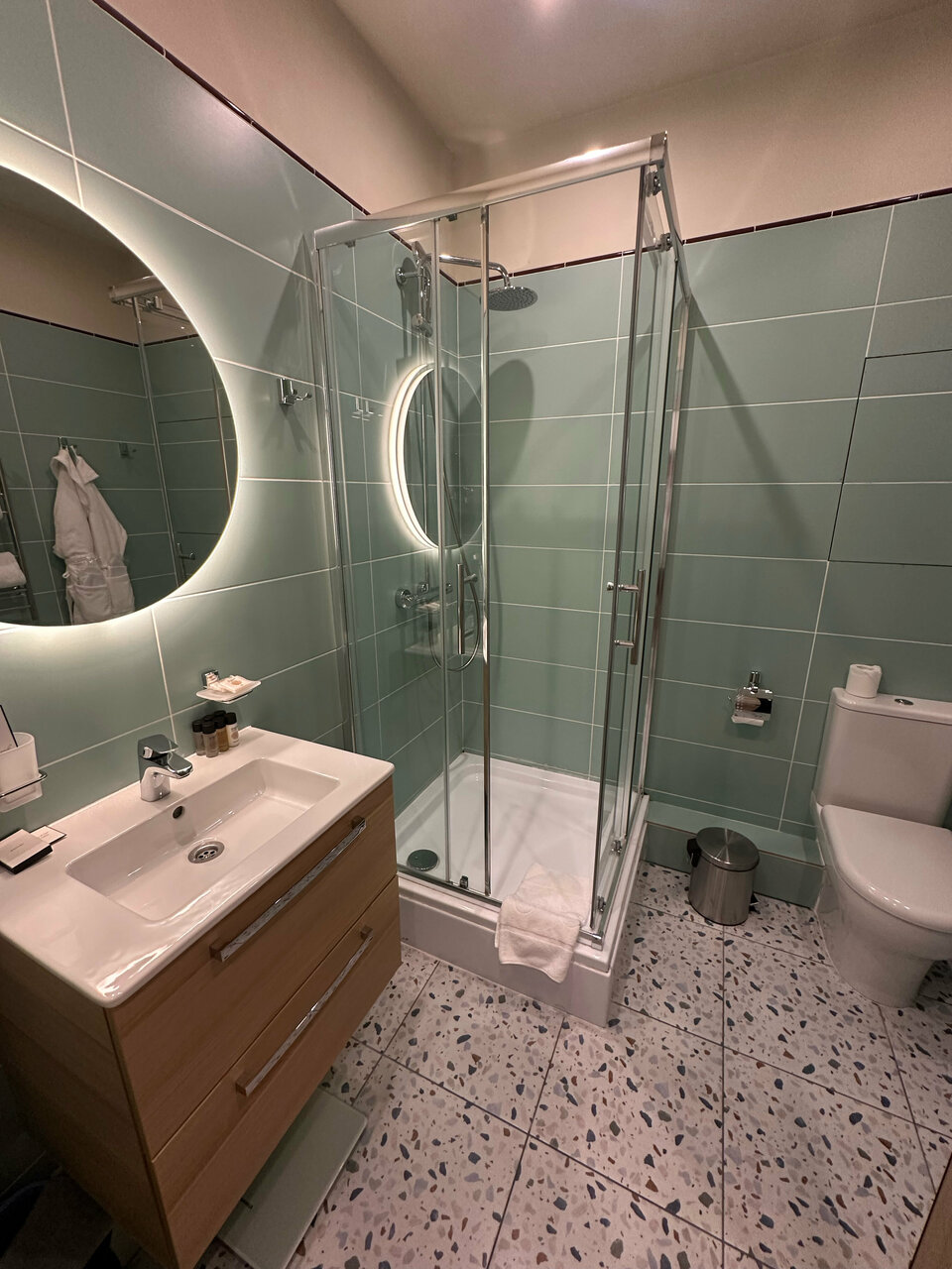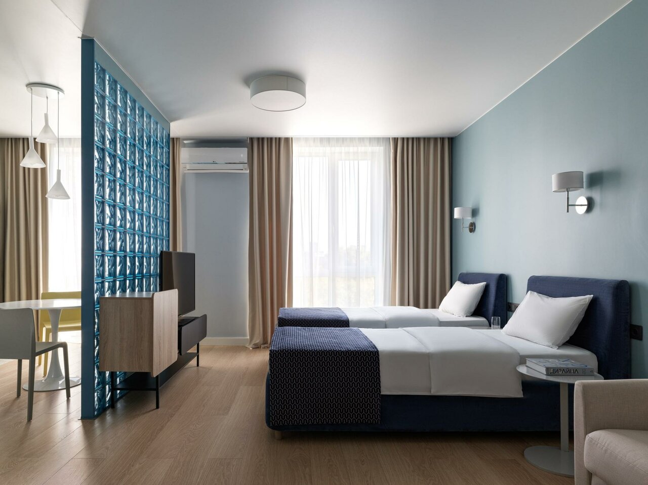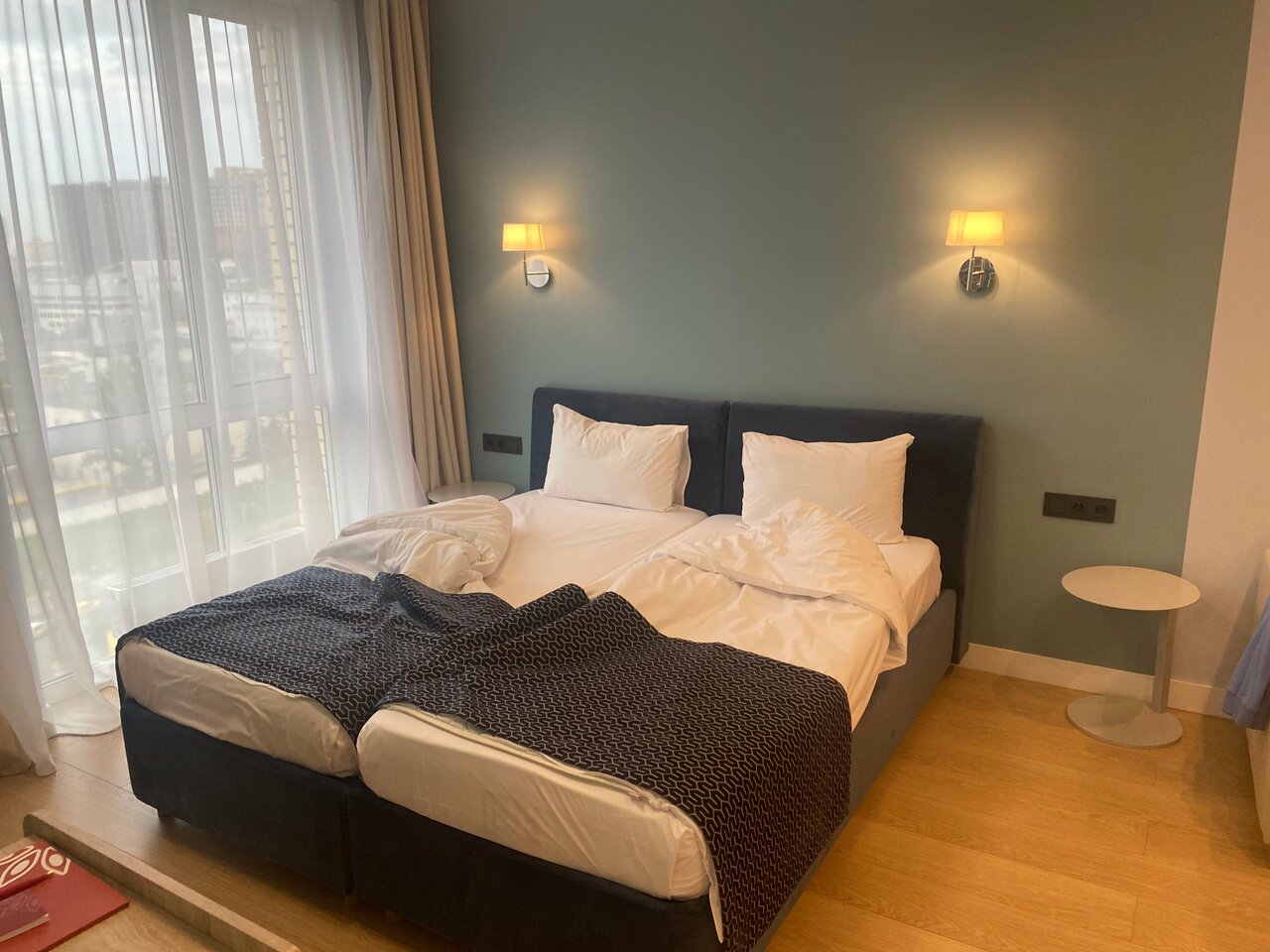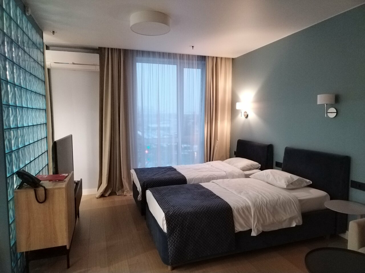 Снимали номер на троих, я, муж и дочь. Отель неплохой, но в номере грязновато, видно, что открылся недавно, но под кроватью вековая пыль, слив в душевой плохо пропускает воду, фасады кухни и обеденный стол со сколами и подтеками, дочь спала на диване с очень жесткими пружинами, мне казалось, что в таких номерах должна быть умная колонка, но это я может придираюсь. Из посуды всего одна маленькая кастрюля, бокалов для вина или рюмок нет вовсе. У нас в номере один раз прибрали, но зачем-то забрали два крохотных кусочка мыла из ванной и полотенце для ног, на которое мы вставали после душа, если бы я не брала с собой из дома мыло, то этих двух кусочков мне навряд ли бы хватило.Но! Персонал очень вежливый, в ванне, при въезде обратили внимание, что ручка двери почти отвалилась, тут же пришёл мастер и всё починил. В номере было всего два банных полотенца, я попросила полотенце для дочери, его тут же принесли. В целом неплохо, шикарная детская площадка во дворе, приятное место, метро близко!