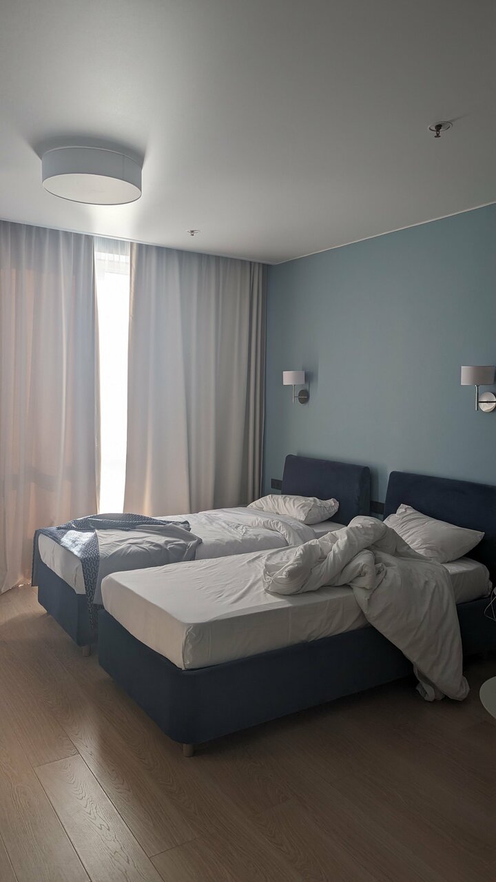 Самый плохой отель, в котором я жила. На ресепшне отвечают по заученным скриптам. Я заказала доставку еды, не могла спустится 20 минут за ней из-за сломанных лифтов, лестничный пролет закрыт. Курьер все это время ждал внизу. При том, что на ресепшне знают о проблеме лифтов и ждут мастеров, на вопрос почему тогда не могут забрать мой заказ ответ: мы не передаем заказы. Еще много недостатков, но я бы даже не подумала писать негативный отзыв, если бы не эта финальная ситуация. Сюда больше ни ногой и никому не советую
