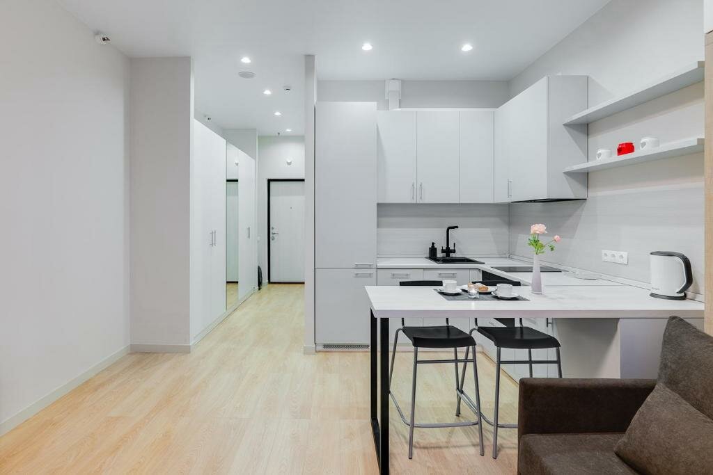 Полностью укомплектованные апартаменты для проживания, все необходимые имеется, дизайнерский ремонт, новый дом, в пешей доступности кафе, рестораны, продукты, магазины, метро