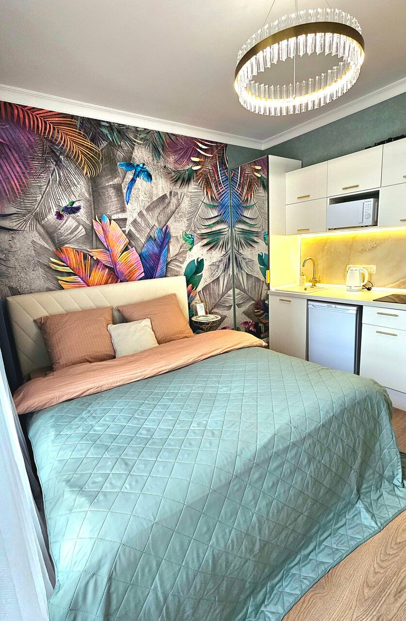 Были с мужем , всё как на картинке , уютная мини студия , все необходимое есть ,очень чисто , свежий ремонт , заселились без проблем!
