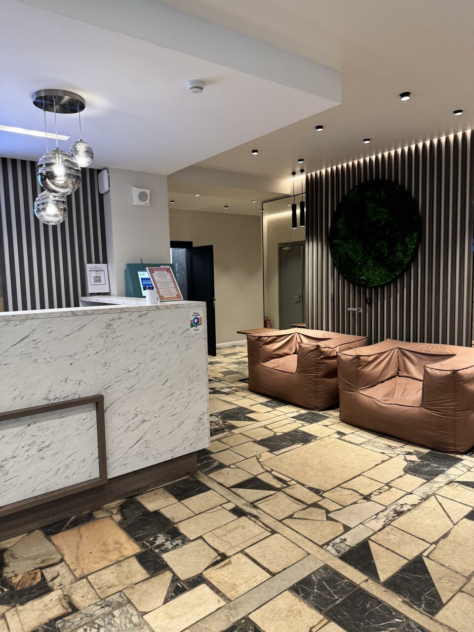 Очень маленькое пространство, лишённое уюта, без звукоизоляции. Штора узкая не рассчитанная на ширину окна, раковина в ванной не присоблена для мытья рук, есть стиралка, но негде сушить бельё, ни места, ни сушилок. Вайб общаги и остаток чужих волос при заселении. Ценник при этом как у нормального отеля. Район? Такси основной вид транспорта.