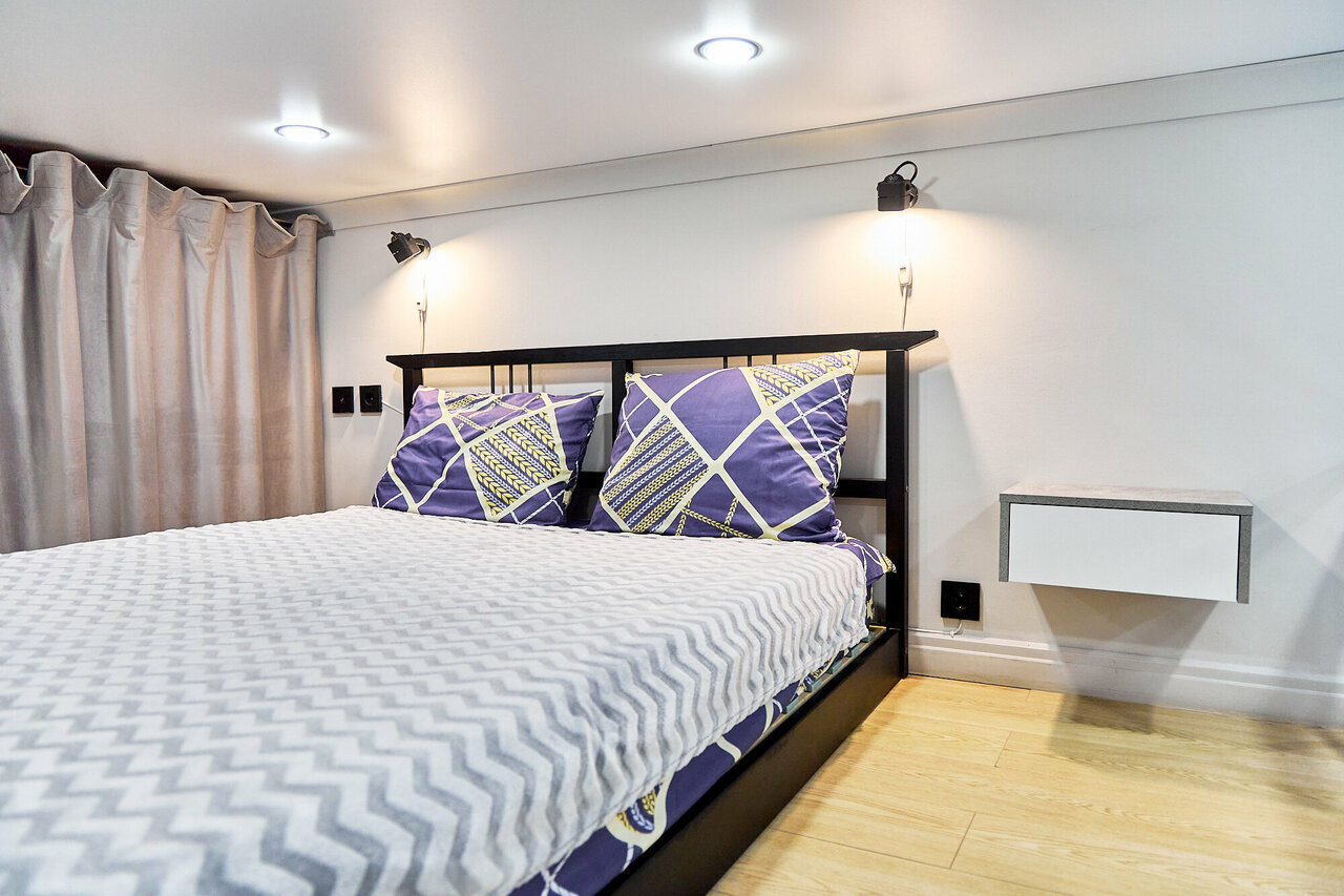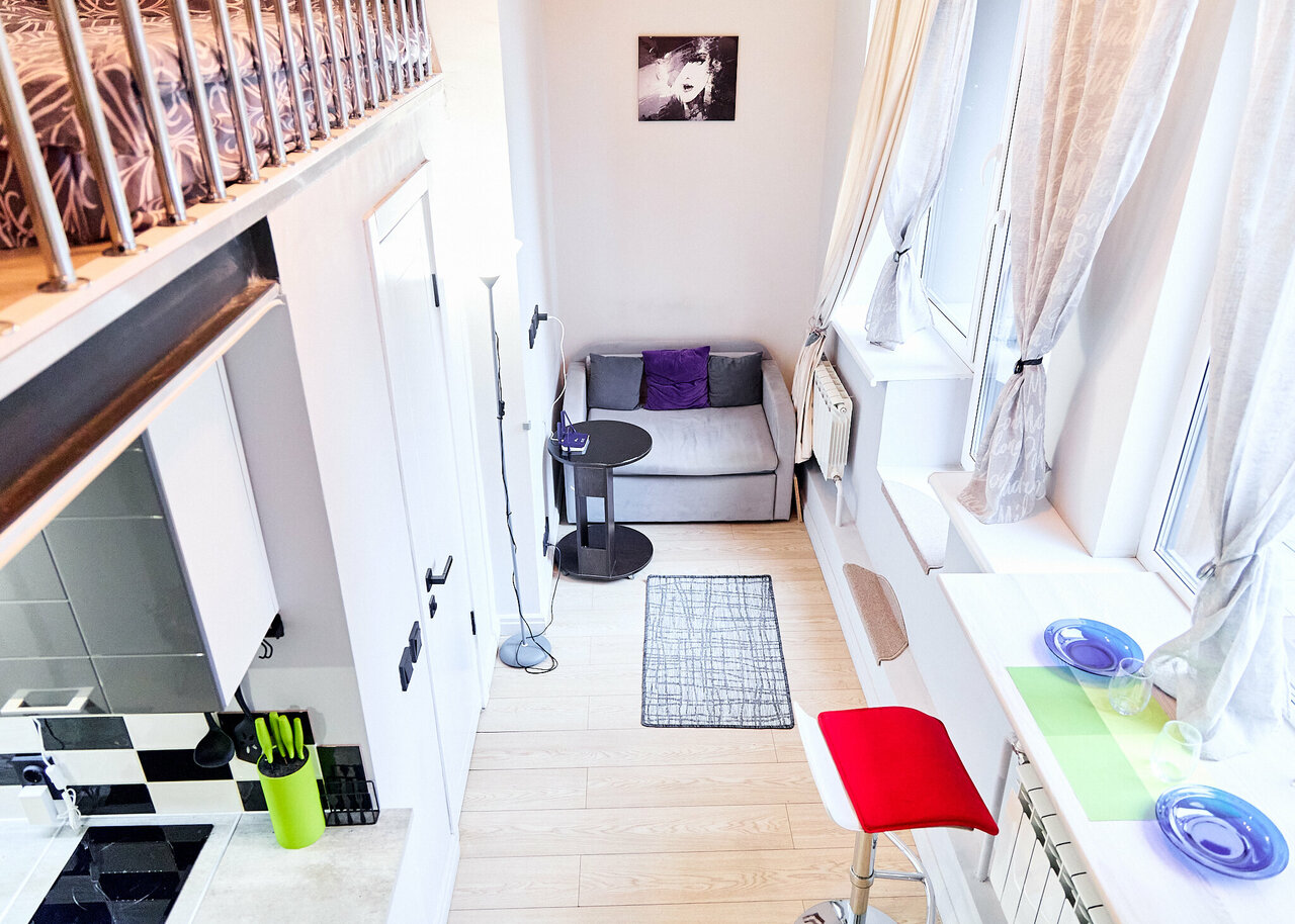 Комфортный номер с собственной кухней, есть вся посуда, вполне неплохое рабочее место у окна, чтобы усесться с ноутбуком. Много места для хранения вещей. Из нюансов только формат номера, что необходимо залезать наверх, чтобы добраться до кровати. А также, в ванной пахнет затхлостью, шторка в душевой кабинке короткая и заливается ванная, а бортик имеет щели и вода может частично выливаться за пределы.