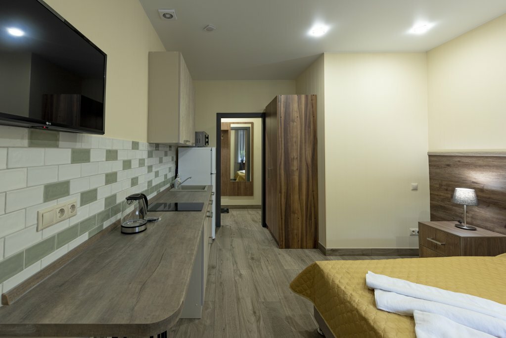 Двоякое впечатление. Отель отличный (арартаменты, обслуживание). Место очень неудачное на сегодняшний день. Дорога до отеля между рынком и жд, в номере с закрытыми окнами через железные жалюзи всю ночь пахло шашлыком.